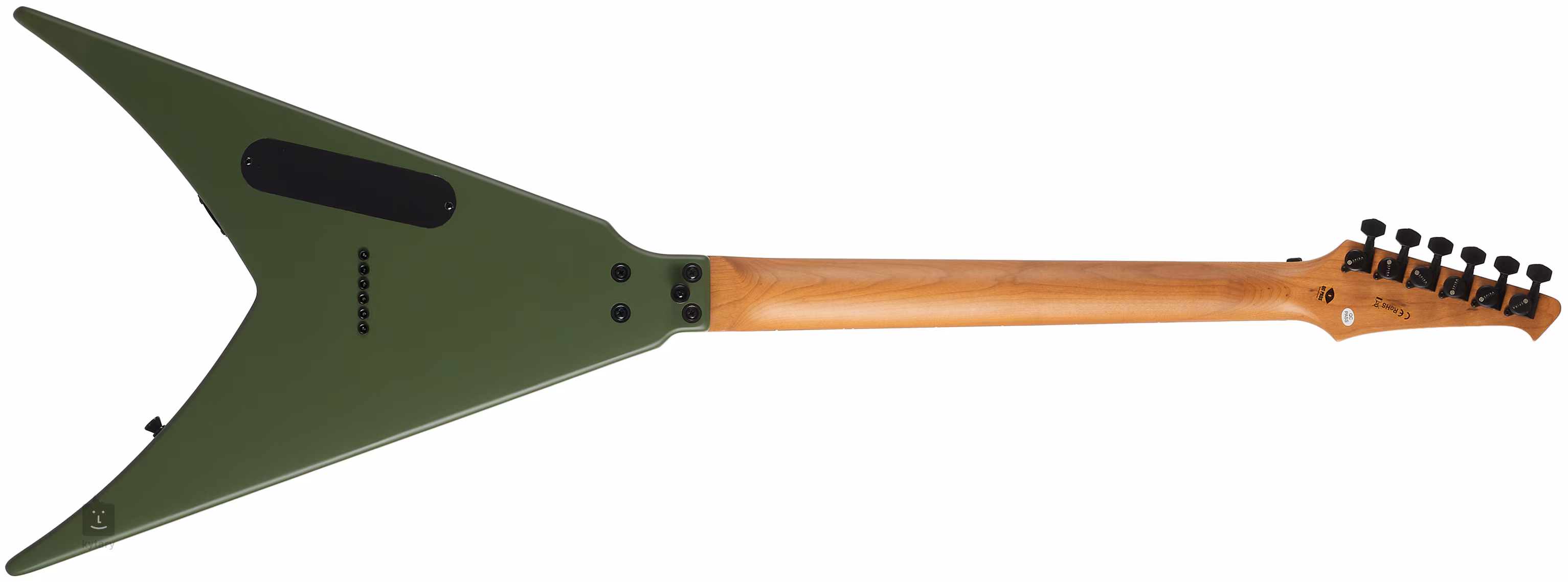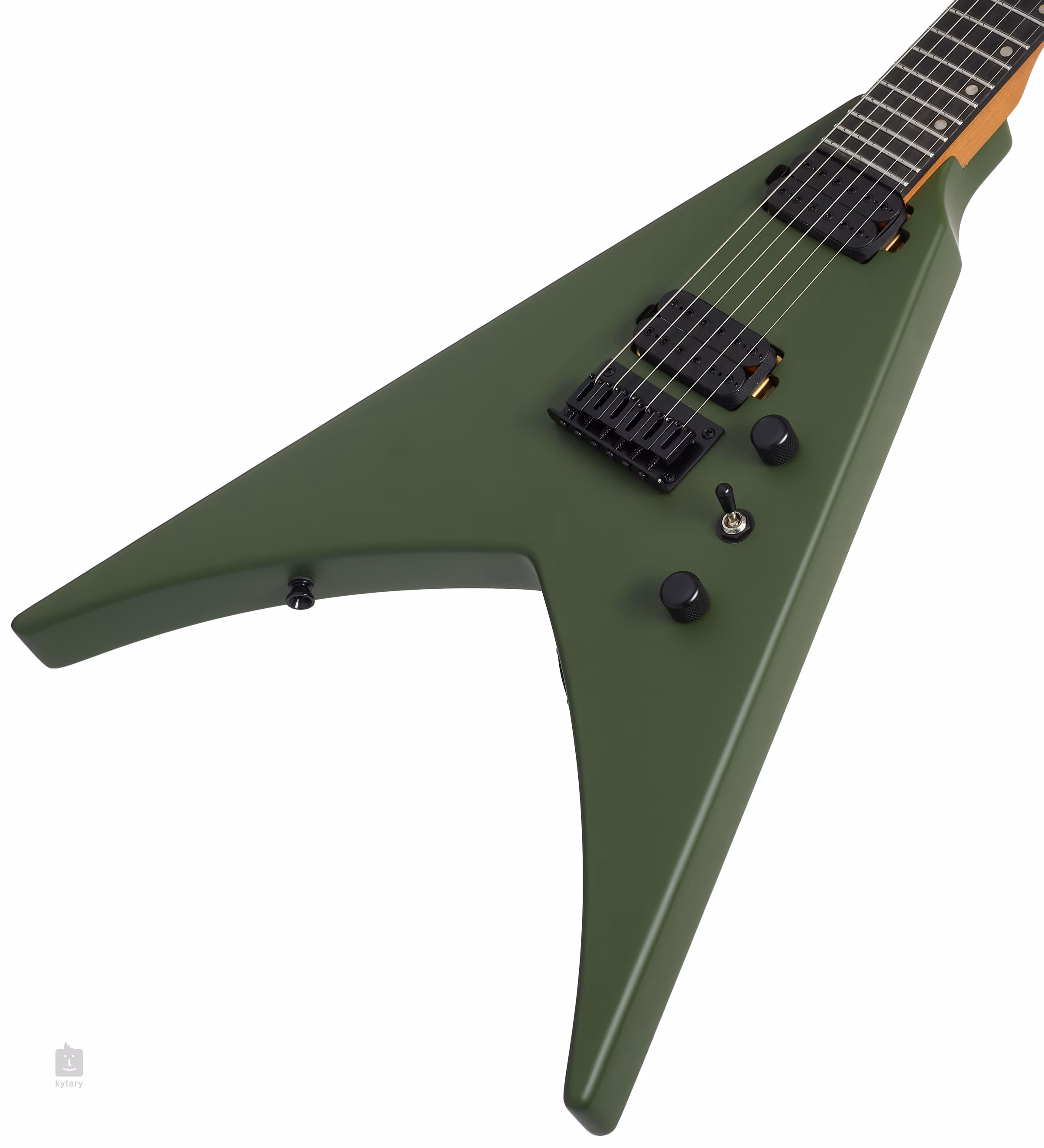 La guitare électrique V-400 MGR est une guitare en "V" classique, c'est-à-dire basée sur la forme des modèles Flying V. Elle est dotée d'un corps en bois torréfié et d'un corps en acier inoxydable. Elle possède un corps en peuplier torréfié, un manche en érable canadien avec un profil "Modern D" et une touche en ébène avec vingt-quatre frettes jumbo. Le traitement thermique du corps et du manche rend le bois de la guitare plus stable.