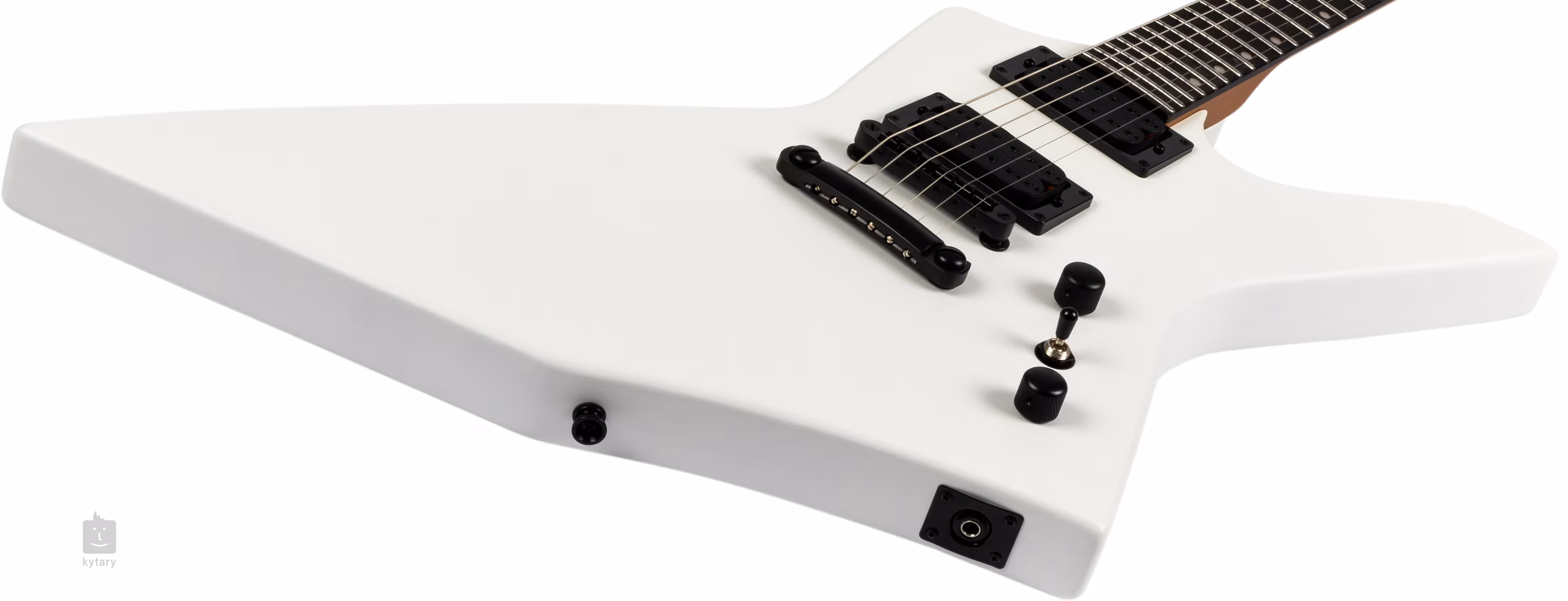 Deux humbuckers Spira Villain exclusifs avec des aimants en céramique et une sortie plus puissante donnent à la guitare un son juteux que vous apprécierez particulièrement dans les réglages à gain élevé. Les réglages sonores peuvent être manipulés à l'aide des boutons standard. Les cordes sont montées dans les mécaniques de l'entreprise et dans un cordier et une tige de tension robustes. La finition élégante est accentuée par une laque mate et un accastillage noir.