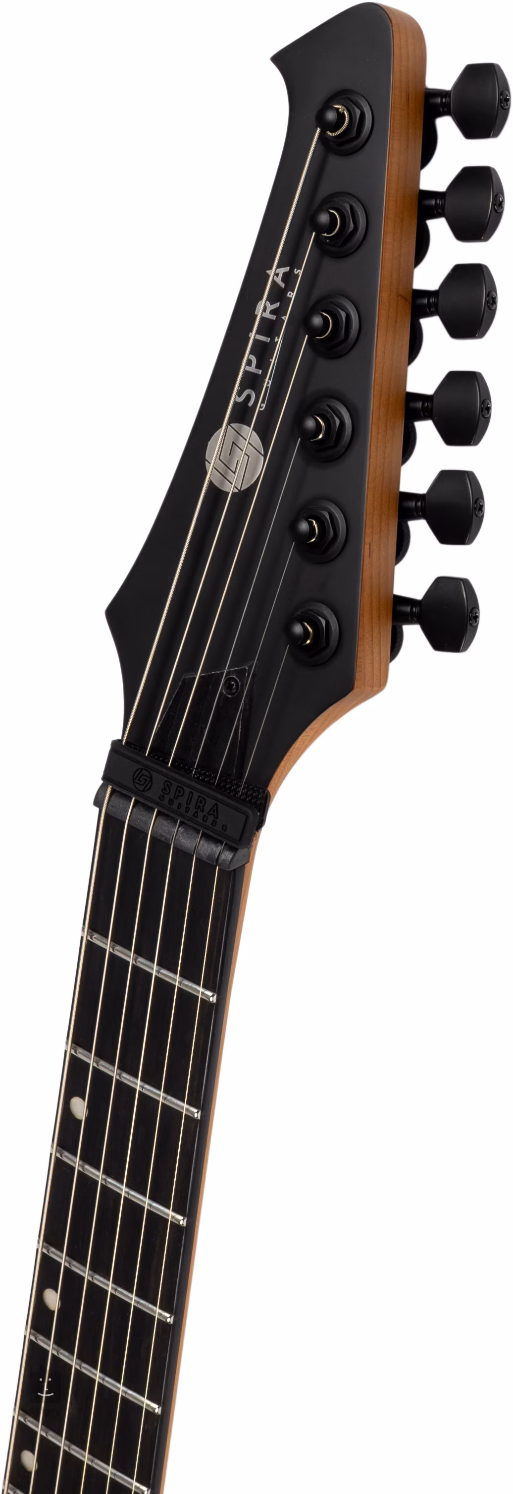 Spira Guitars propose des guitares électriques abordables au design moderne et dotées de puissants micros pour les joueurs de styles hard et heavy. Il s'agit d'un projet de personnes issues du camp Jet Guitars, une marque connue pour produire des guitares "budget" au design traditionnel. Dans le cas de Spira Guitars, seuls comptent la distorsion juteuse à haut gain et le "full chug".