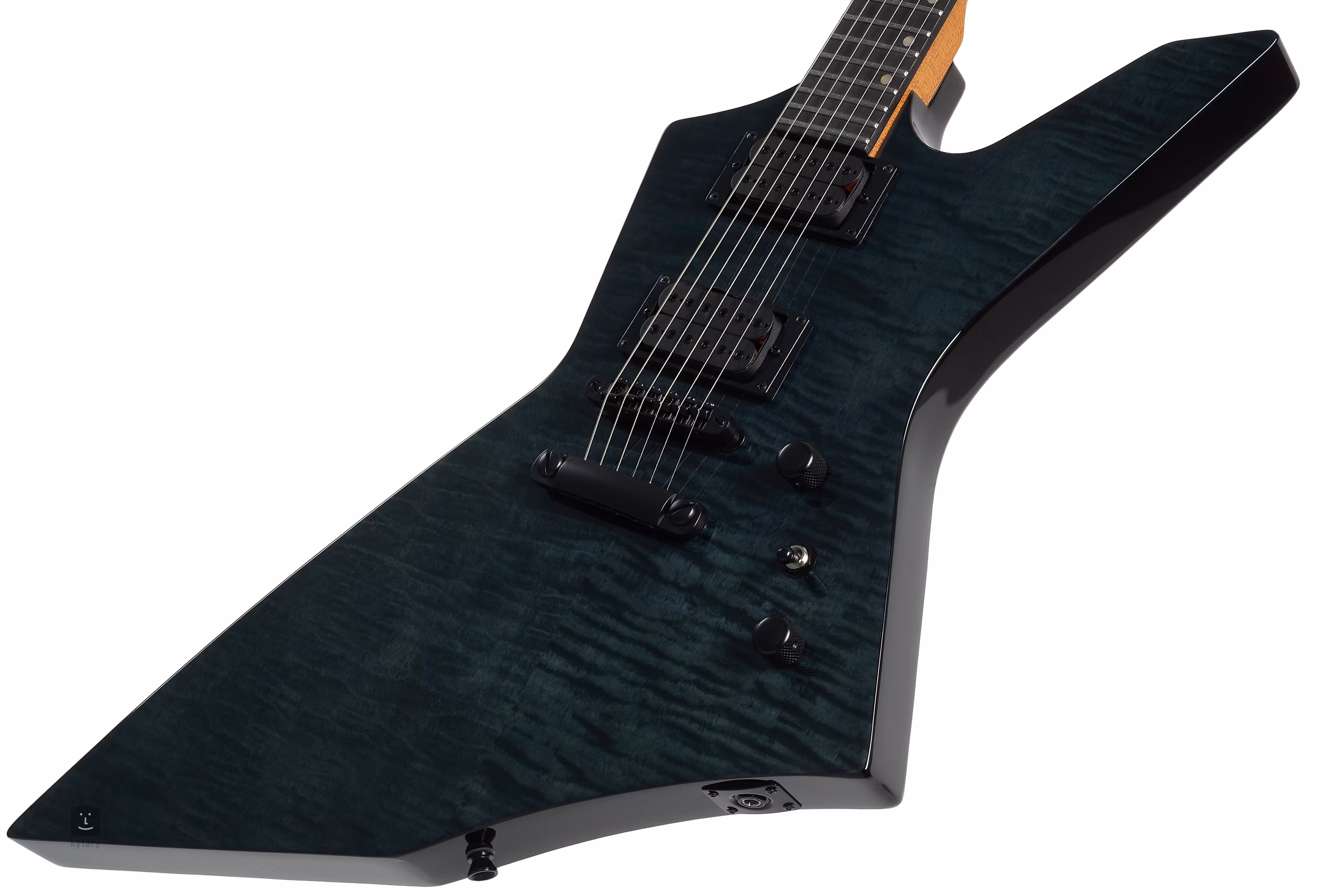 La guitare électrique X-500 TBK E reprend la géométrie des modèles Explorer. Le corps en acajou de l'instrument est décoré d'un placage d'érable. Le grain de l'érable est accentué par une laque brillante et une finition Trans Black. Le manche en érable rôti canadien avec un profil Modern D est relié à une touche en matériau composite moderne au design d'ébène et dotée de 24 frettes jumbo.