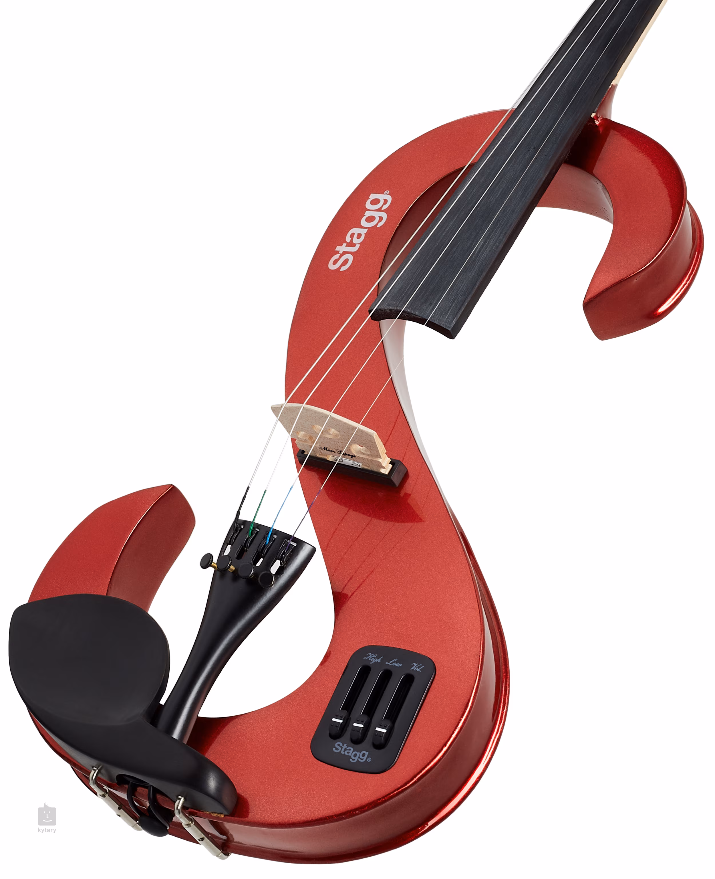 Violon électrique Stagg 4/4. Le corps est en érable massif, l'instrument est équipé d'un micro piézo et d'un préamplificateur actif.Le violon dispose également d'un contrôle du volume, d'un égaliseur a 2 bandes et d'une sortie casque. Vous recevrez ce magnifique violon au design audacieux, avec étui, archet, colophane, écouteurs et pile 9V.