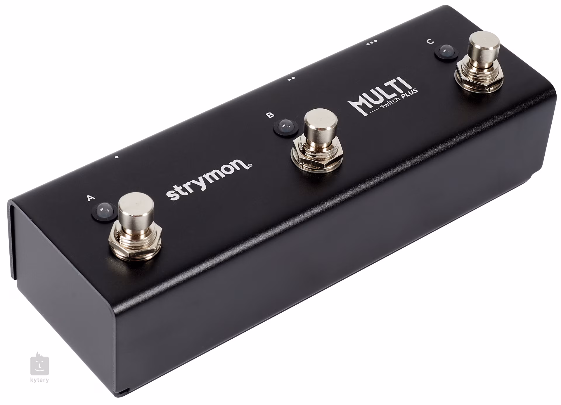 MULTIswitch Plus est un pédalier multifonction pour les pédales d'effets Strymon compatibles, avec lequel vous pouvez activer des presets d'effets individuels (Sunset, Riverside, Volante) et parcourir leur base de données (TimeLine, BigSky, Mobius), l'utiliser comme boucleur 3-6 boutons (TimeLine) et contrôler Tap Tempo (BigSky, Deco, DIG, Flint, Mobius, TimeLine, Volante), Fav (Brigadier, Deco, DIG, El Capistan, Flint, Lex, Riverside, Sunset), Boost (Riverside) et Speed (Lex).