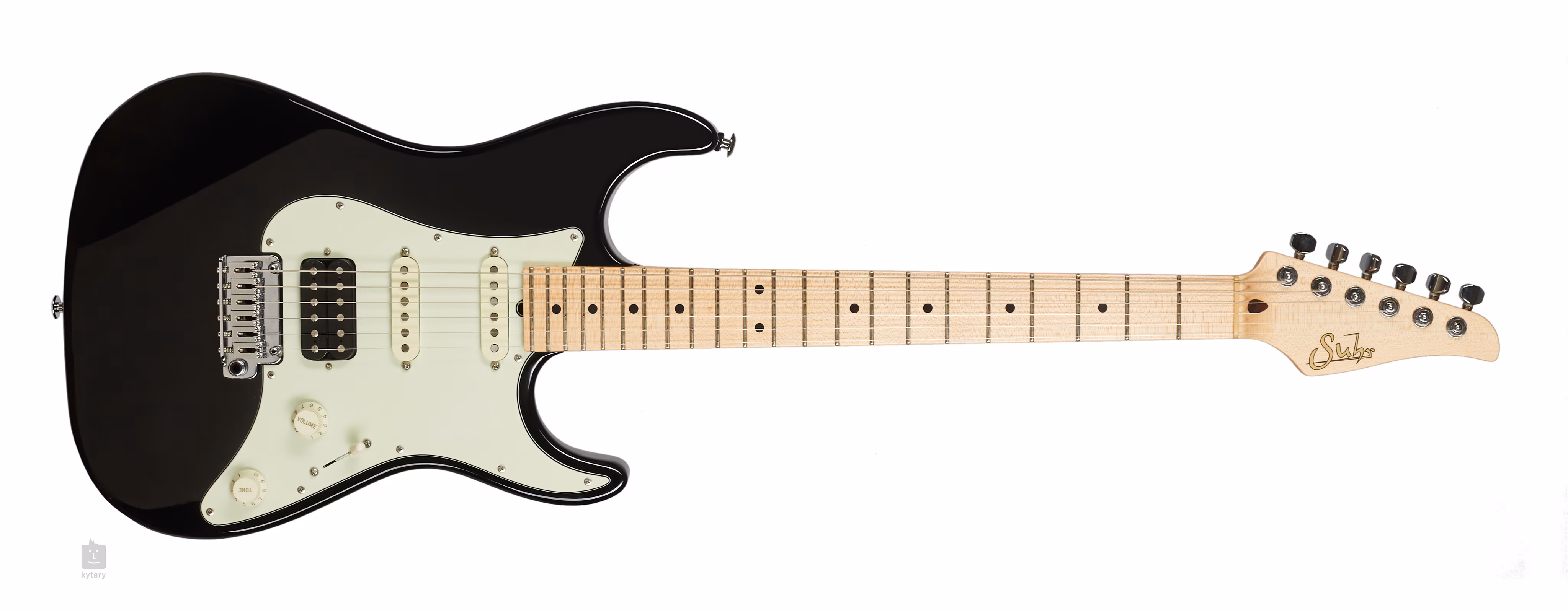 Modèle S2 avec configuration HSS (singles JST FL, humbuckers JST SSV). Le corps est en aulne, le manche est en érable d'une seule pièce avec des frettes hautes, un profil Even C Slim et un rayon composé de 10-14". La tête est équipée de mécanismes de verrouillage Sperzel.