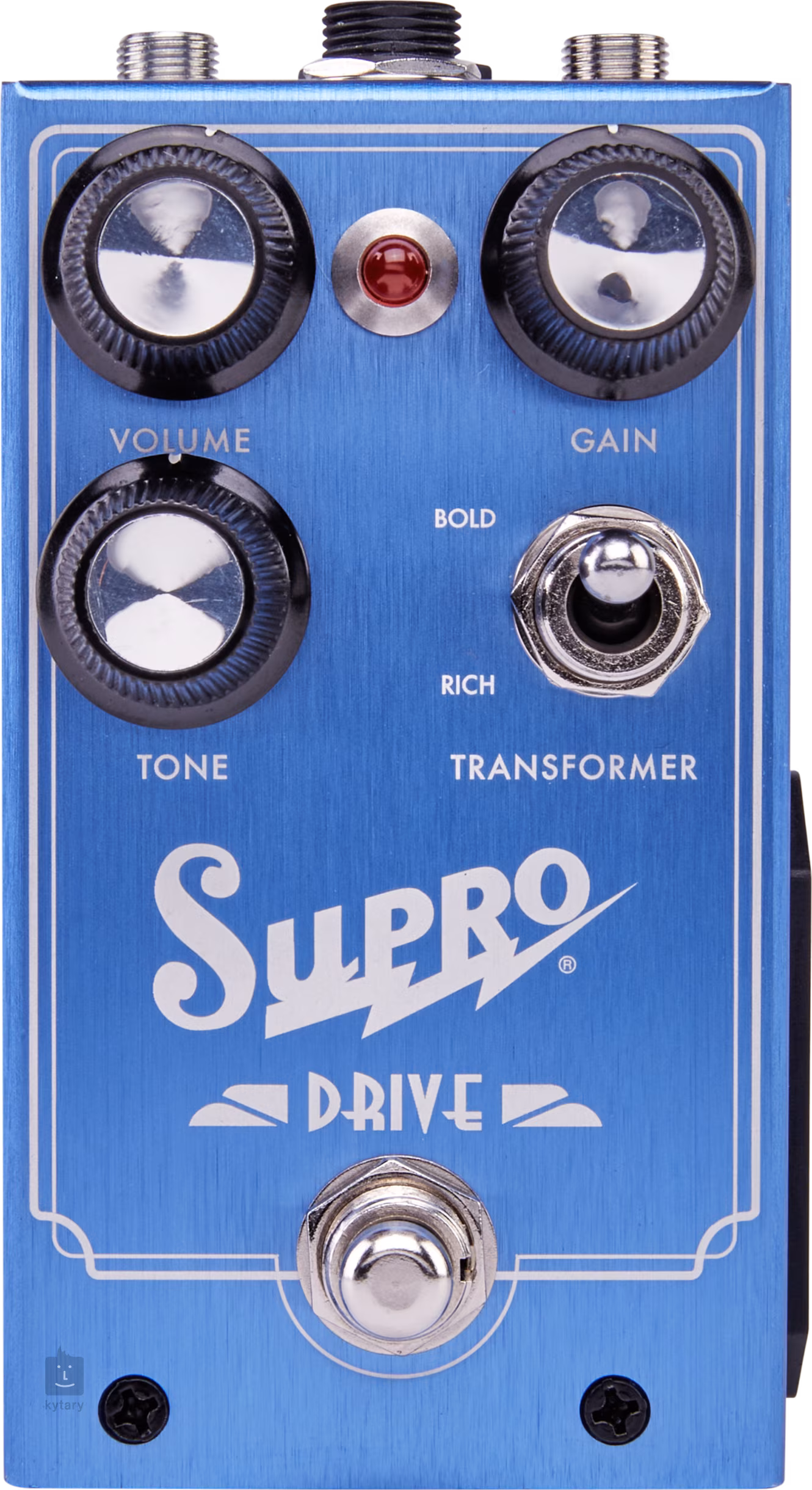 L'effet de guitare Supro Drive reproduit fidèlement le son des machines à lampes de la marque américaine Supro. En émulant chaque aspect du circuit des machines Supro des années 1960, y compris le transformateur de sortie, la boîte est capable d'offrir la distorsion/overdrive chaleureuse qui a défini la forme de la musique rock des années 1960 à aujourd'hui.