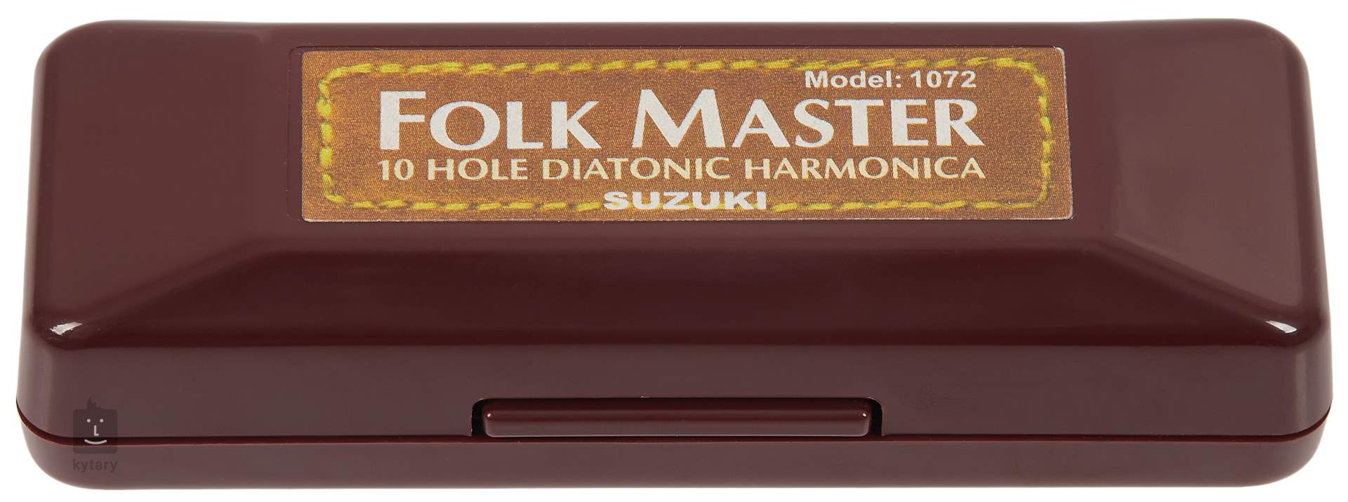 Le Suzuki 1072 Folkmaster fait partie de la série principale d'harmonicas diatoniques folk de Suzuki. Il s'agit d'un diatonique classique à dix canaux, avec un corps en plastique moulé, des couvercles en métal gravé et des micros en bronze phosphoreux. Grâce à la technologie laser, il offre un son clair et une production de tonalité facile, y compris des techniques d'exécution telles que le tone bending. L'instrument est utilisé dans les musiques folk, country et blues.