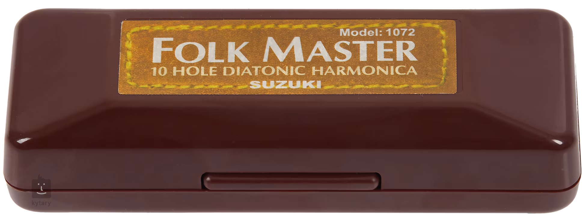 Le Suzuki 1072 Folkmaster fait partie de la série principale d'harmonicas diatoniques folk de Suzuki. Il s'agit d'un diatonique classique à dix canaux, avec un corps en plastique moulé, des couvercles en métal gravé et des micros en bronze phosphoreux. Grâce à la technologie laser, il offre un son clair et une production de tonalité facile, y compris des techniques d'exécution telles que le tone bending. L'instrument est utilisé dans les musiques folk, country et blues.