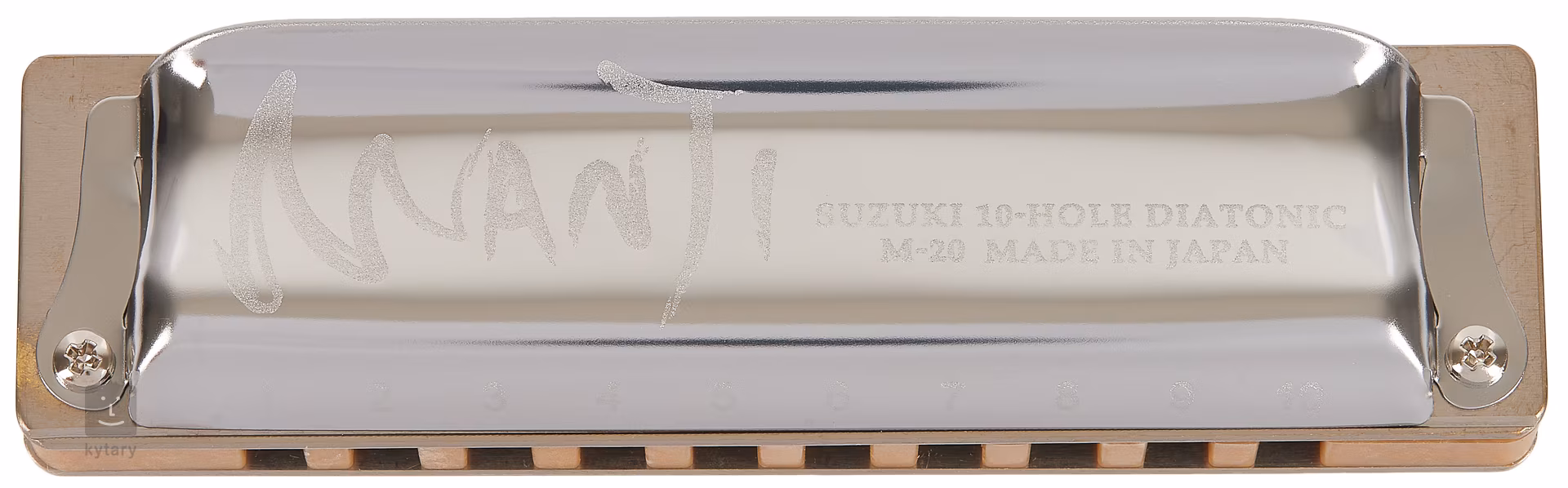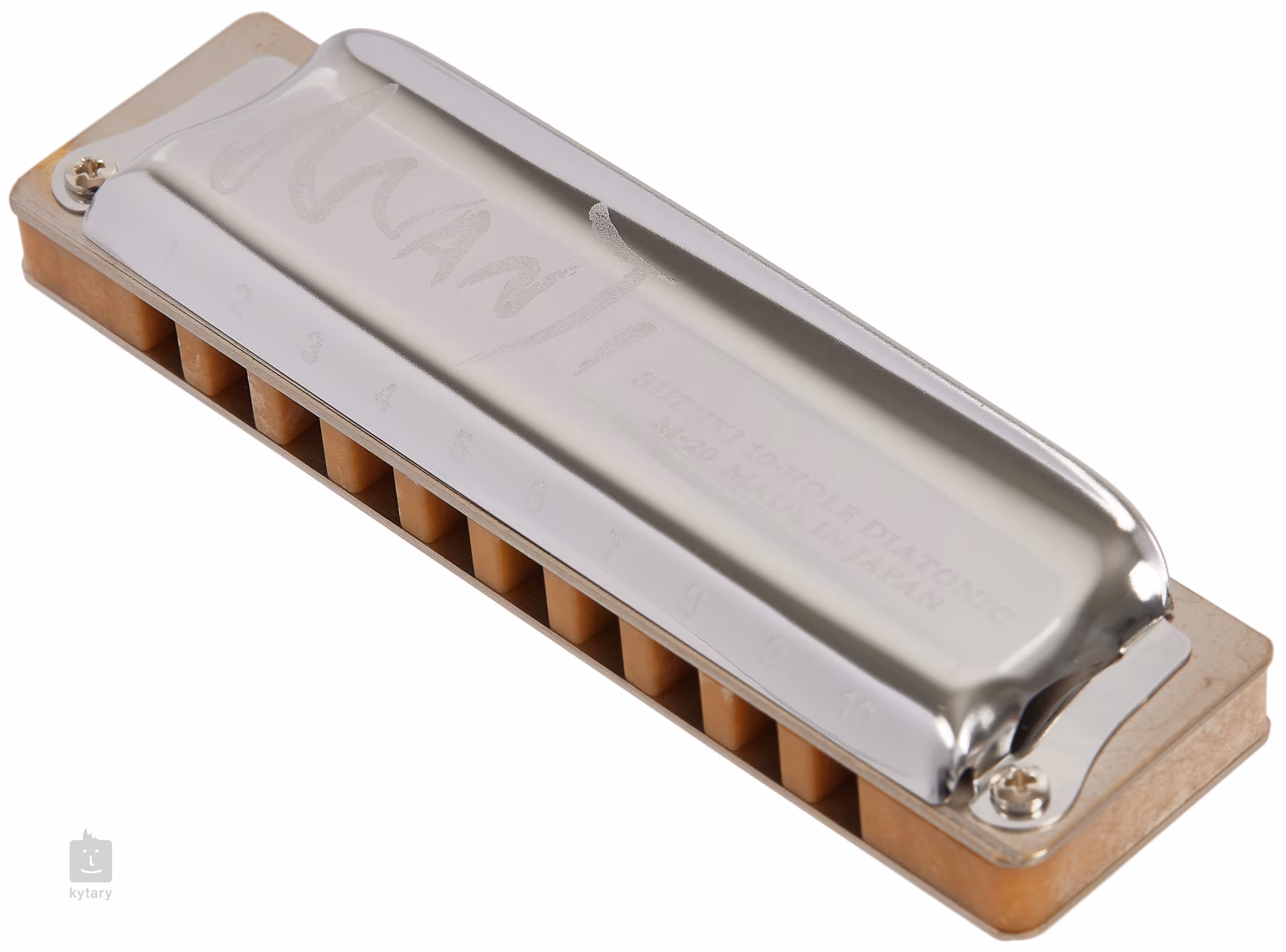 Le Suzuki M-20 Manji est un harmonica diatonique haut de gamme conçu pour les joueurs de blues/rock. Son corps est fabriqué à partir d'un matériau composite composé à 50 % de fibres de bois naturel, ce qui lui confère la sonorité des corps en bois classiques tout en offrant la durabilité et la jouabilité des matériaux plastiques. Les couvercles en acier inoxydable sont largement ouverts à l'arrière, mais aussi des deux côtés, de sorte que le son circule sous plusieurs angles et que le musicien bénéficie d'un meilleur retour d'information. Les voix sont en bronze phosphoreux.