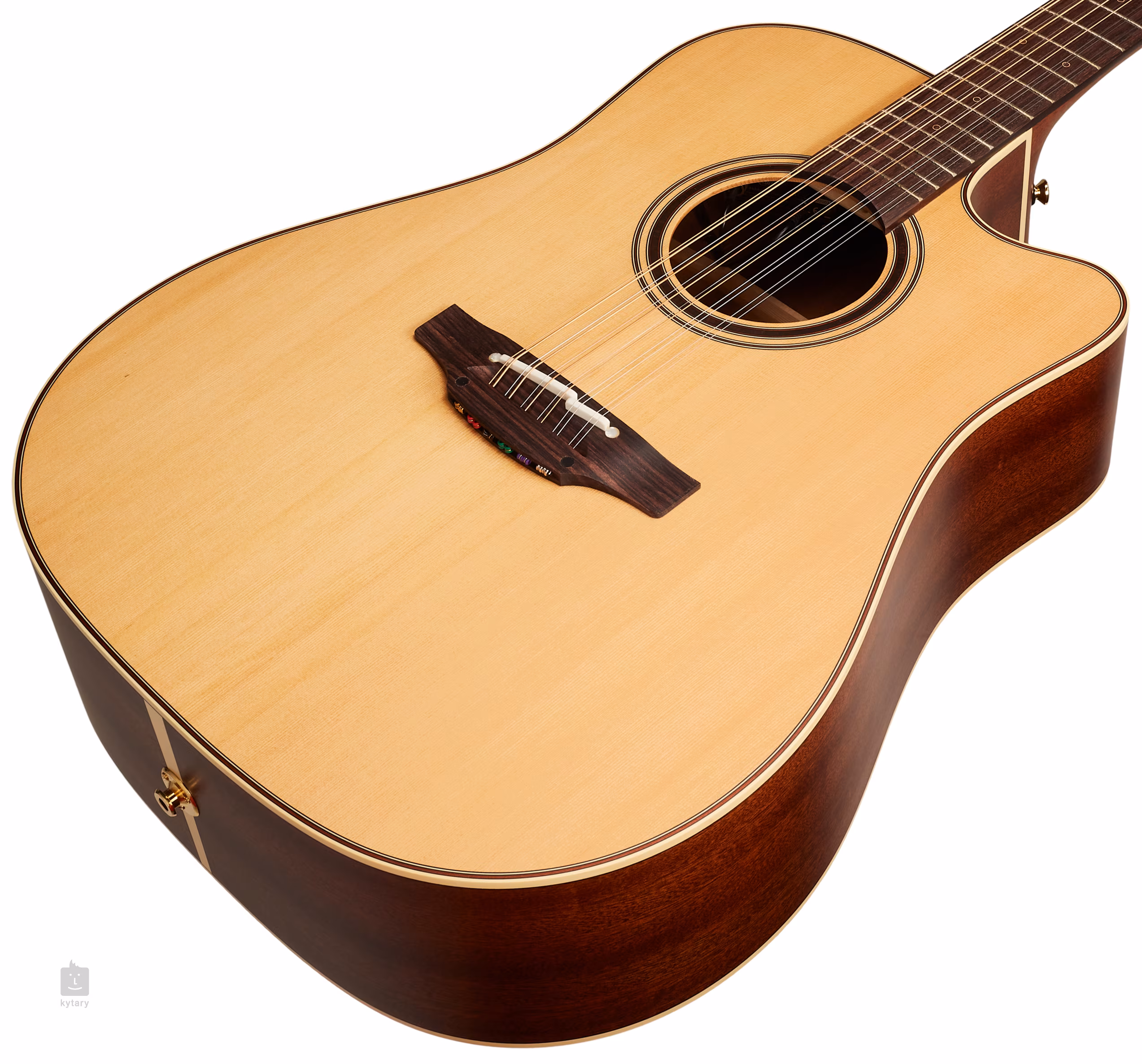 La Takamine P3DC-12 est une guitare électro-acoustique à douze cordes dotée d'un corps résonant de type dreadnought. Le corps de l'instrument est composé d'une table d'harmonie en cèdre massif, d'un dos en sapelli et d'éclisses en sapelli massif. Le son chaud et équilibré de la guitare est soutenu par une table d'harmonie en X traditionnelle. Le manche en acajou plus étroit et subtilement asymétrique avec un profil en C s'adapte parfaitement à votre main. La touche en palissandre et l'élégant pan coupé de la partie inférieure de la caisse (pan coupé vénitien) garantissent un grand confort de jeu sans risque de fatigue précoce due à une finition exigeante.