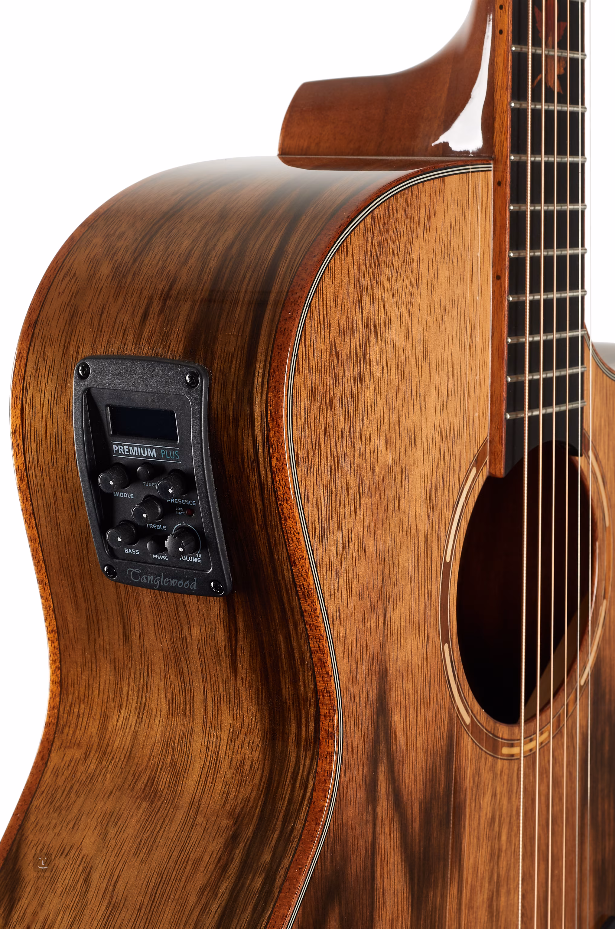 Les options de renforcement du son comprennent le préampli TW Premium Plus de la société avec un égaliseur à quatre bandes, une fonction de phase et un accordeur intégré. Les cordes sont maintenues par des mécanismes chromés et une tête en composite grâce aux frettes NuBone zero et saddle. La finition soignée est accentuée par la bordure du corps en acajou double face, la rosace en acajou et les points de positionnement en nacre sur la touche.
