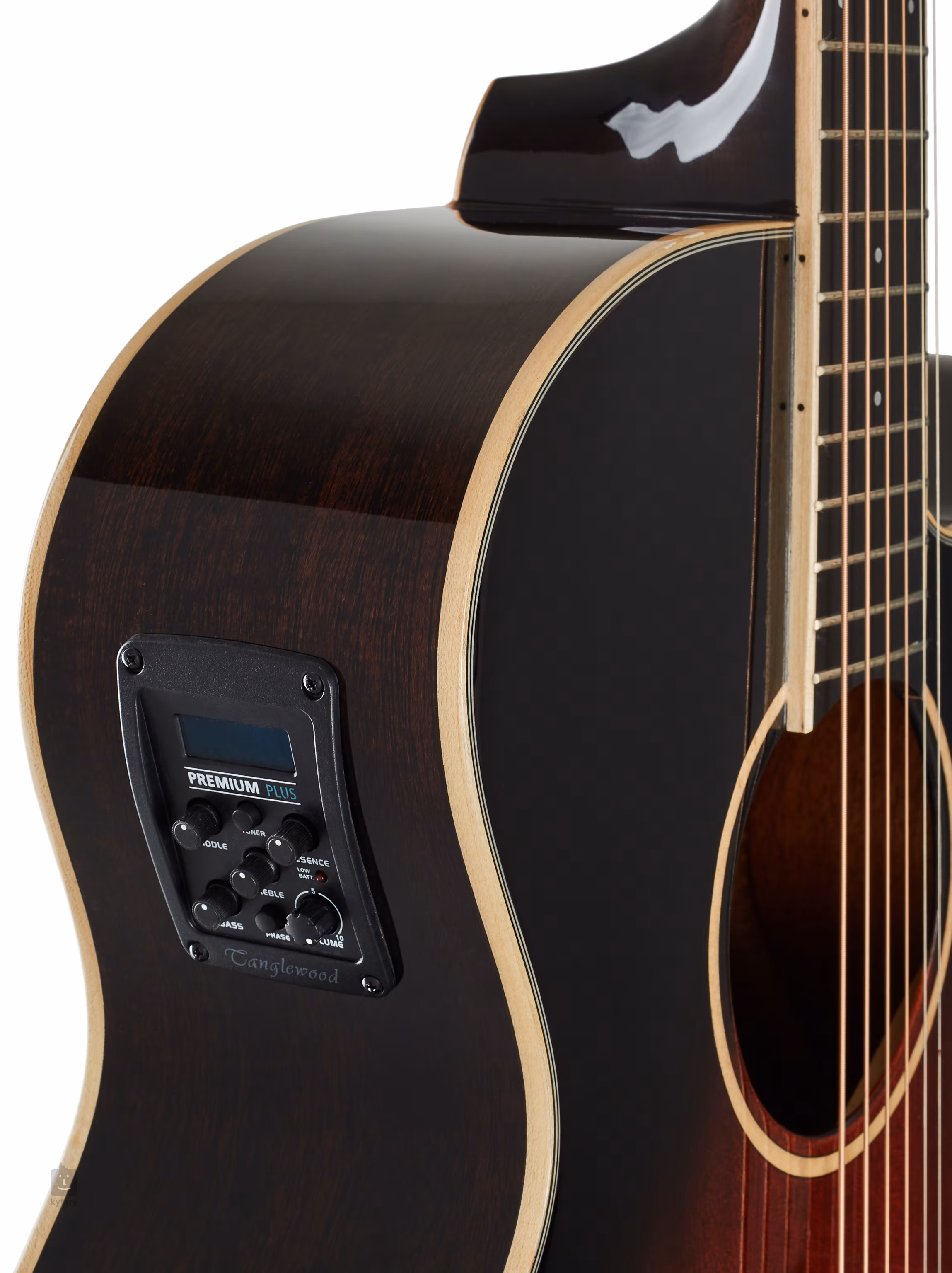 Les options de renforcement du son comprennent le préampli TW Premium Plus de la société avec un égaliseur à quatre bandes, une fonction de phase et un accordeur intégré. Les cordes sont maintenues par des mécanismes Grover chromés moulés sous pression et une tête en composite, grâce à des frettes NuBone à zéro et à sillet. La finition soignée est accentuée par la reliure double face du corps et la finition Autumn Vintage Burst de la table d'harmonie.