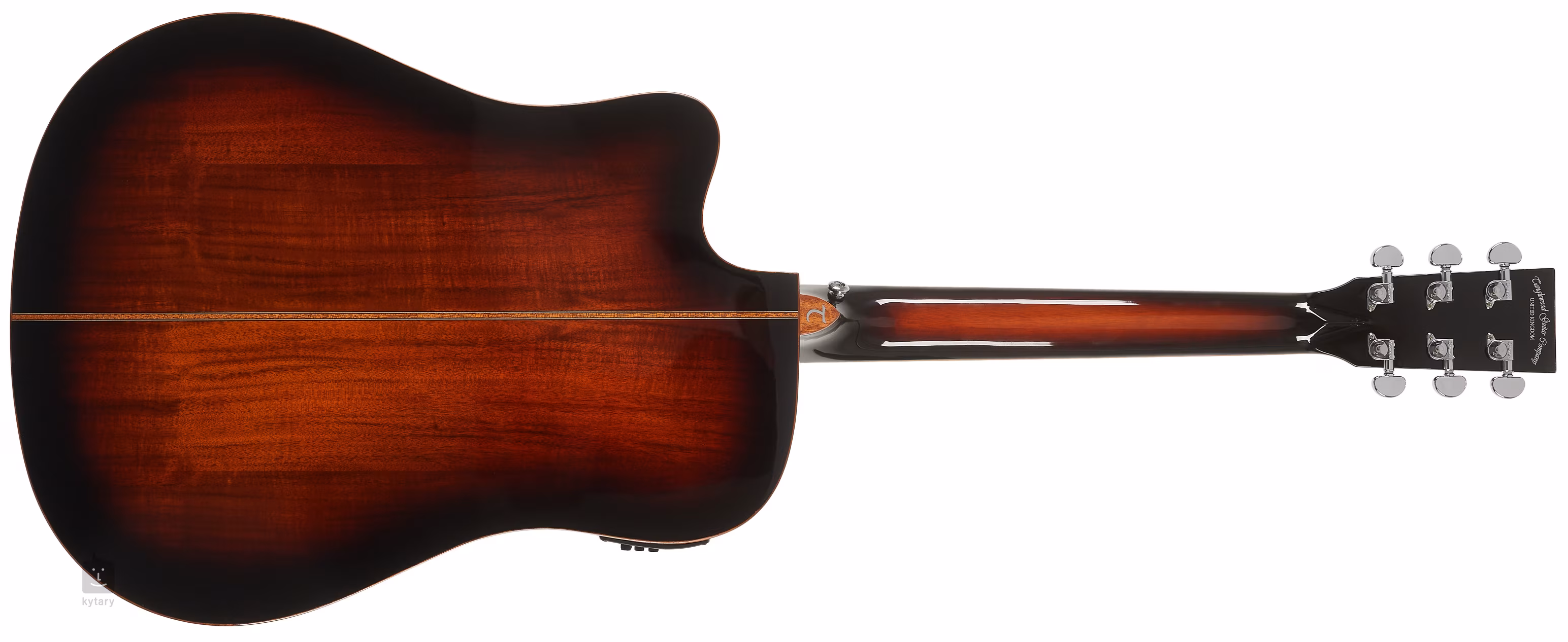 Les options de renforcement du son comprennent le préampli TW Premium Plus de la société avec un égaliseur à quatre bandes, une fonction de phase et un accordeur intégré. Les cordes sont maintenues par des mécanismes Grover chromés et une tête en composite grâce à des frettes NuBone à zéro et à sillet. La finition soignée est accentuée par la finition du corps en acajou double face, l'incrustation décorative sur la touche et la rosace en érable et acajou.