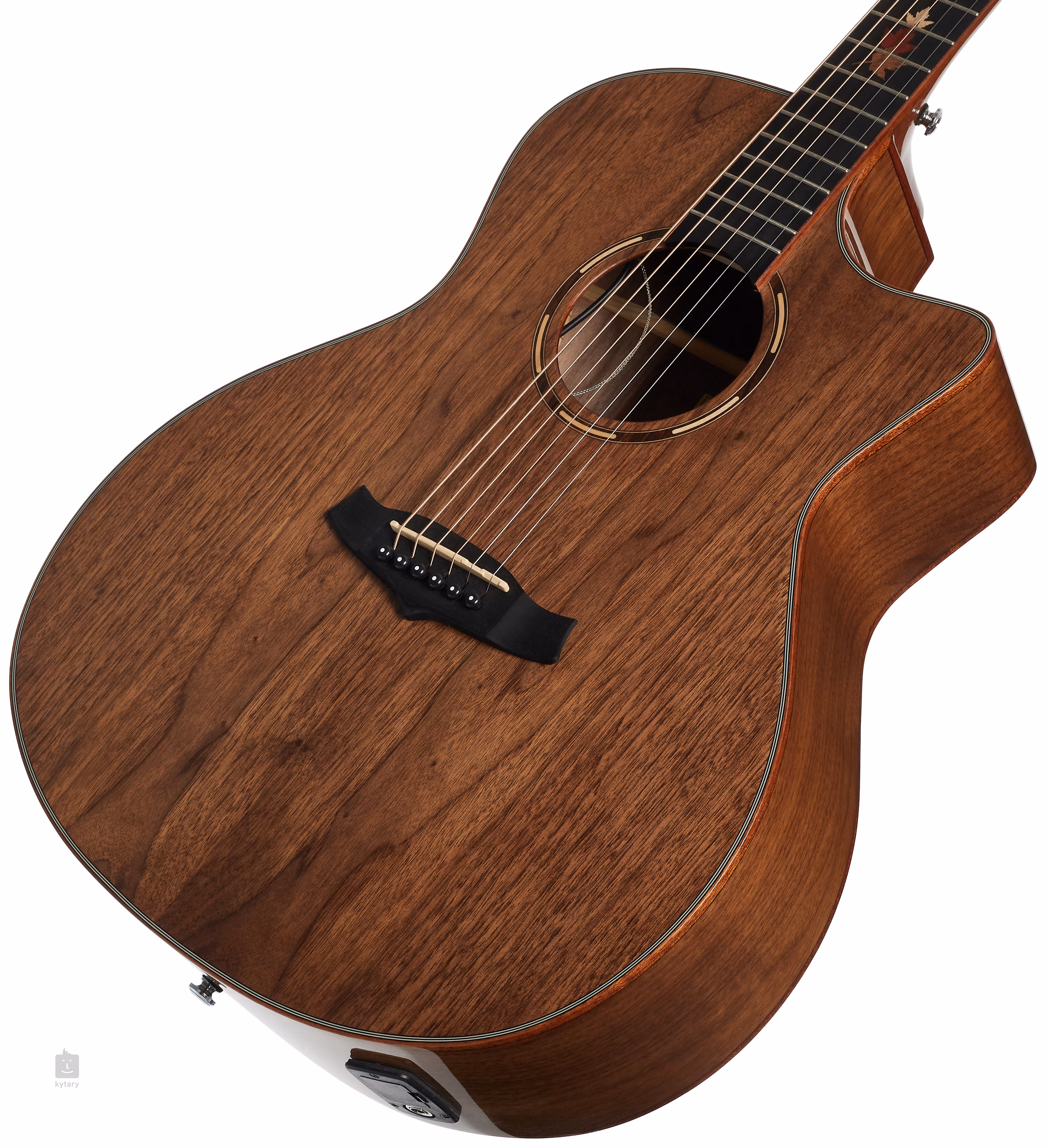 Les options de renforcement du son comprennent le préampli TW Premium Plus de la société avec un égaliseur à quatre bandes, une fonction de phase et un accordeur intégré. Les cordes sont maintenues par des mécanismes chromés et une tête en composite grâce aux frettes NuBone zero et saddle. La finition soignée est accentuée par la reliure du corps en acajou double face, la rosace en acajou et les points de positionnement en nacre sur la touche.