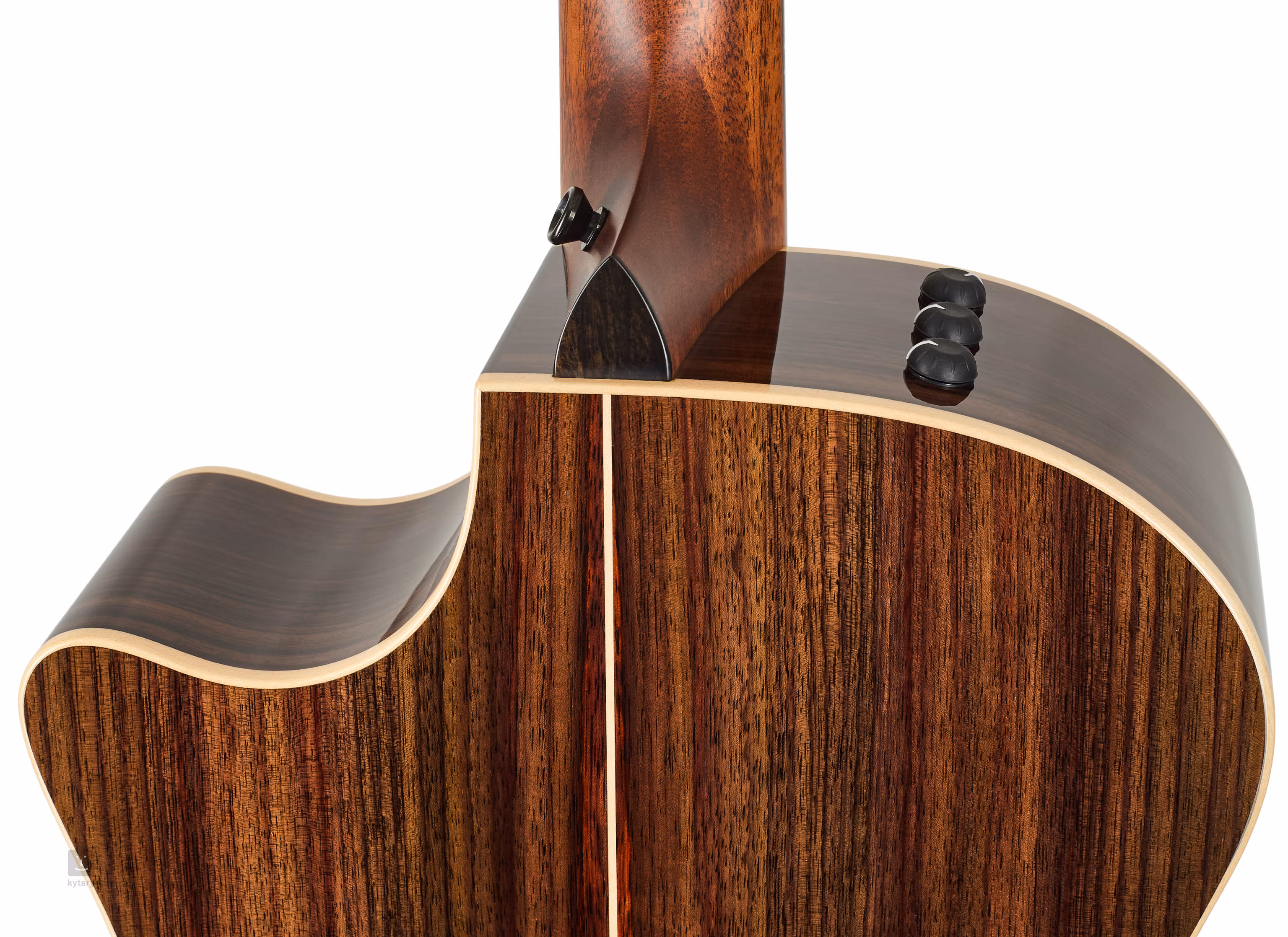 La guitare est équipée d'un système électronique de haute qualité. Le Taylor Expression System 2 utilise trois micros piézo spécialement conçus et calibrés individuellement, situés derrière la touche. Contrairement aux micros conventionnels, ils ne détectent pas les mouvements de haut en bas de la touche, mais les vibrations naturelles de la touche. Cela rend le son de l'instrument beaucoup plus naturel, coloré et agréable, et plus réactif à la dynamique de votre jeu. En même temps, le signal est 25% plus fort grâce au nouveau préampli. Bien entendu, l'effet Larsen est éliminé et vous pouvez régler le volume, les basses et les aigus.