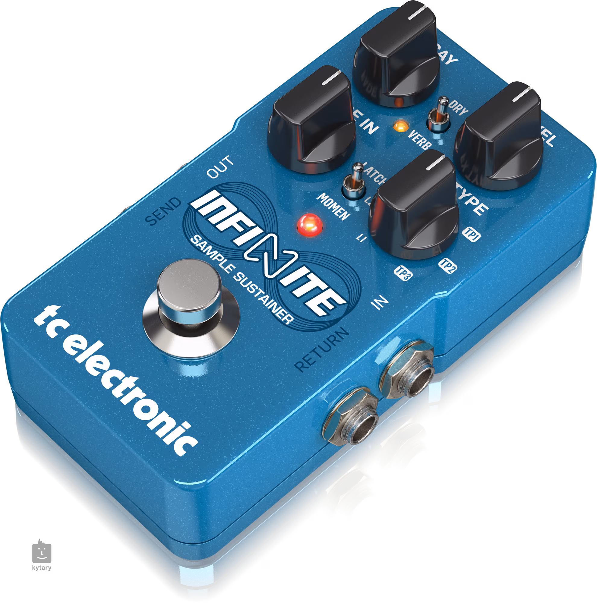 L'effet de pédale TC Electronic Infinite Sample Sustainer s'appuie sur l'héritage des sustainers tels que le EHX Freeze et d'autres effets de pédale qui vous permettent de "boucler" une note ou un accord que vous jouez pendant une durée déterminée, puis d'improviser par-dessus, ou de superposer des boucles. Les réglages des commandes principales déterminent le volume du signal humide et la vitesse d'apparition et de réverbération de l'effet de sustain. La commande FX Type vous permet de choisir entre le nombre de couches de boucles (le mode Infinite offre une superposition infinie) et les effets de la base de données TonePrint, que vous chargez dans le boîtier via USB.