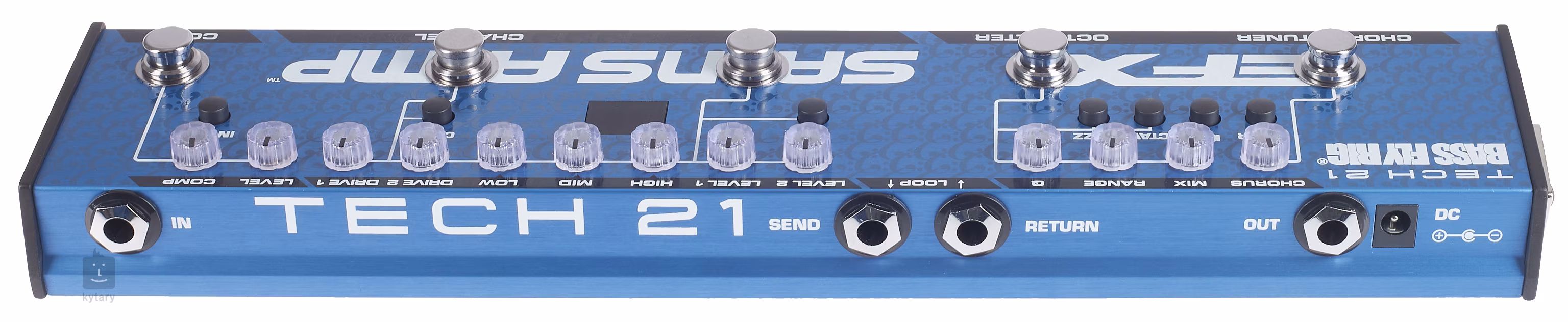 Le Bass Fly Rig est un multi-effet compact qui vous permet de transporter votre son préféré avec votre basse dans un gigbag. Il est basé sur la technologie de modélisation SansAmp et offre une grande variété de sons qui peuvent être personnalisés à l'aide d'une unité d'effets comprenant un chorus, un fuzz et un octaver ou un compresseur FET intégré. Vous disposez également de deux potentiomètres indépendants pour contrôler la fonction Drive (pour le gain et l'overdrive) ou, par exemple, la fonction Bite, qui donne à votre son encore plus de clarté et d'intelligibilité. En combinant les unités, vous pouvez également obtenir des sons de synthé avec un sustain infini. Il y a aussi un Pad pour amortir les instruments actifs à haut rendement, un accordeur chromatique, une sortie XLR ou une boucle d'effets.