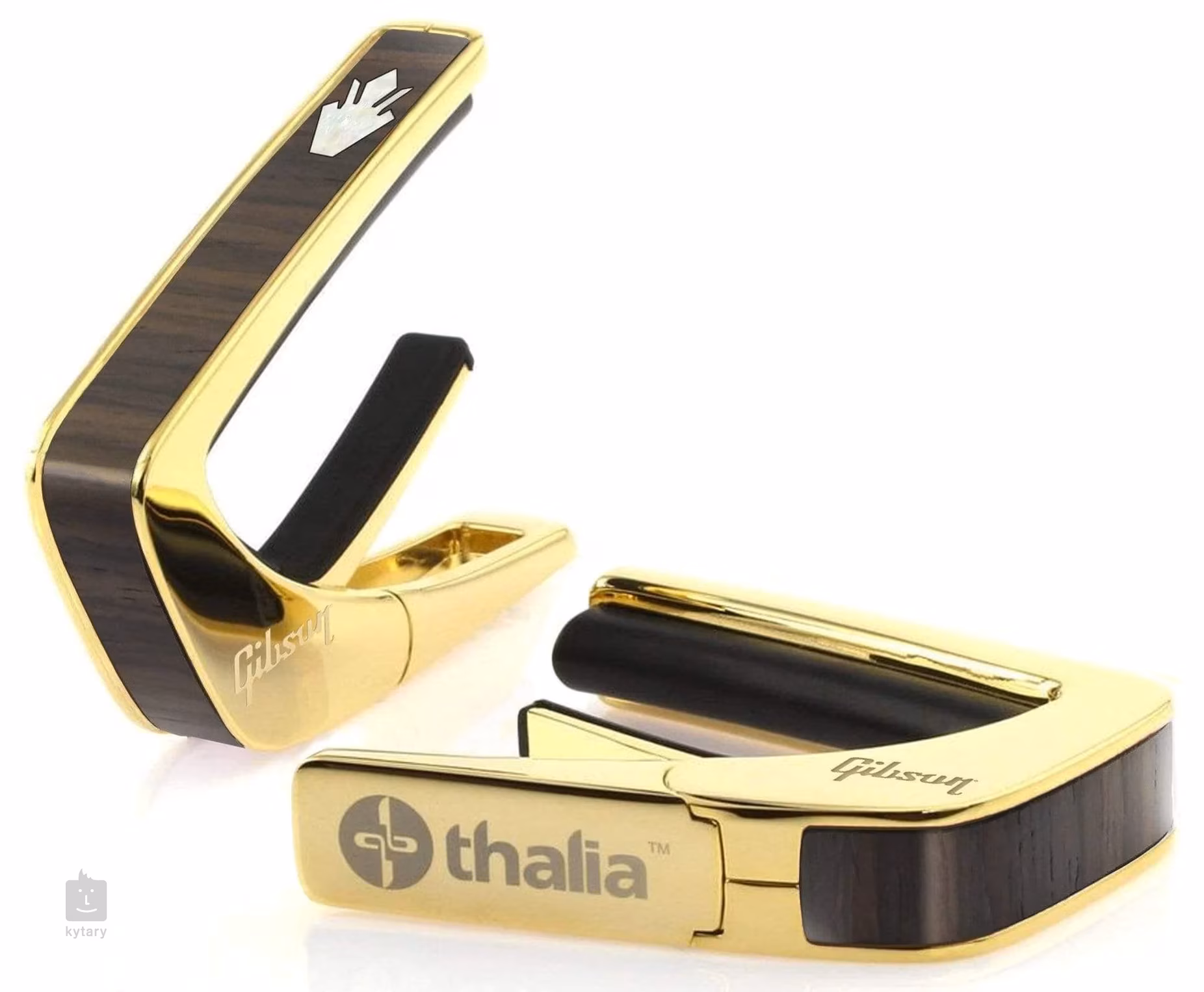 Ce modèle est issu d'une série sous licence officielle de Gibson, et son design est personnalisé pour se fondre dans les frettes de votre Gibson. L'ornementation en nacre est sertie dans du palissandre. Le corps du pickguard est en métal - disponible en noir, chrome ou or. Les capodasters de cette série sont dotées d'un total de quatre incrustations interchangeables dans deux tensions différentes - tension standard et tension plus élevée pour un rayon de 10" et tension standard et tension plus élevée pour un rayon de 12".
