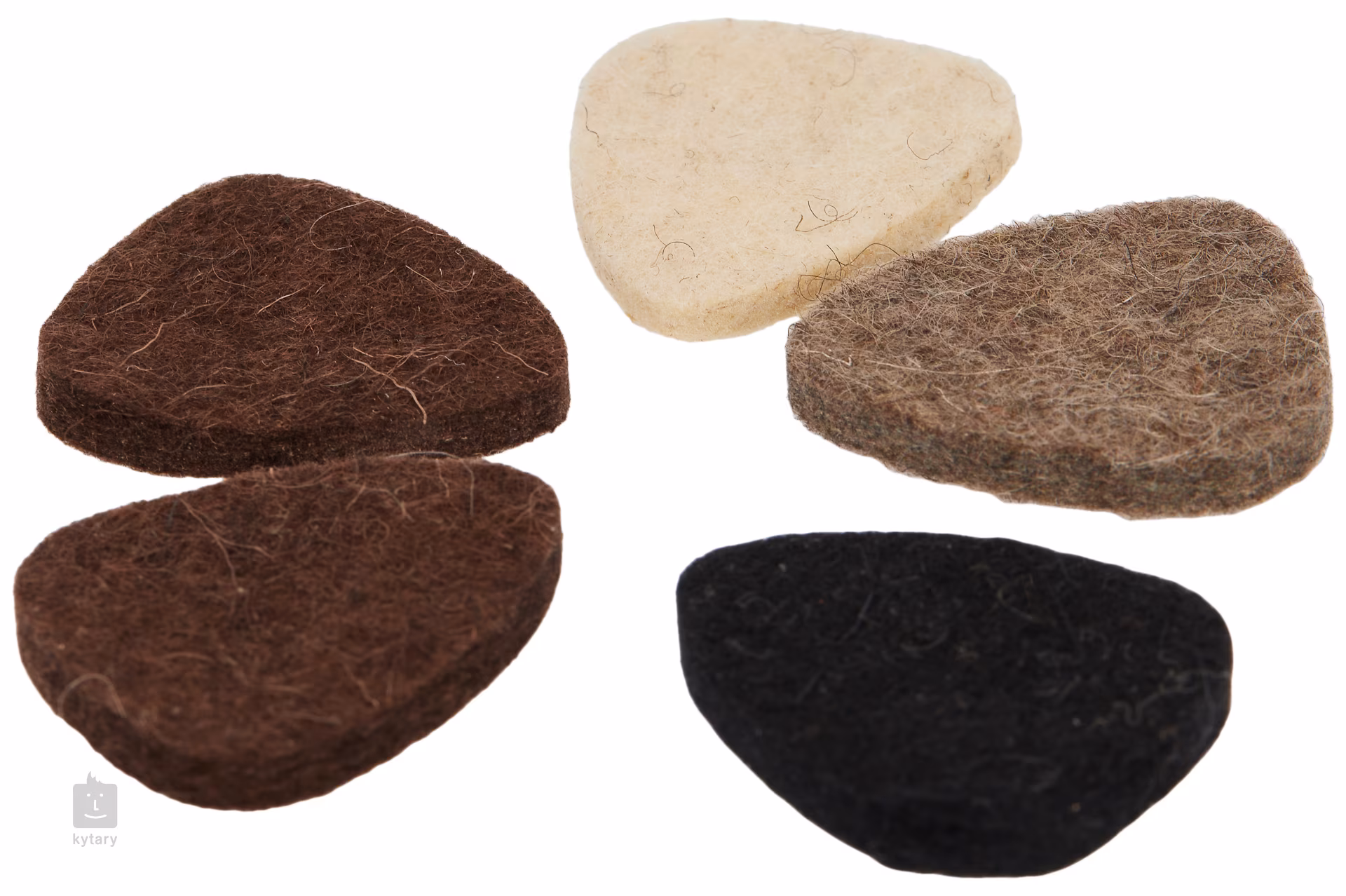 Un jeu de vingt plectres en feutre de laine, idéal pour jouer du ukulélé. La laine naturelle est souple et flexible, ce qui la rend douce pour les cordes en nylon et donne un son rond et chaud. Le paquet contient des plectres de différentes duretés : le blanc a une épaisseur de 4 mm, le gris de 5 mm, le marron et le noir ont une épaisseur de 5 mm et sont également renforcés, ce qui augmente leur dureté et leur donne un son plus brillant. Une boîte en fer blanc très pratique est incluse.