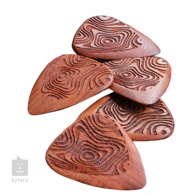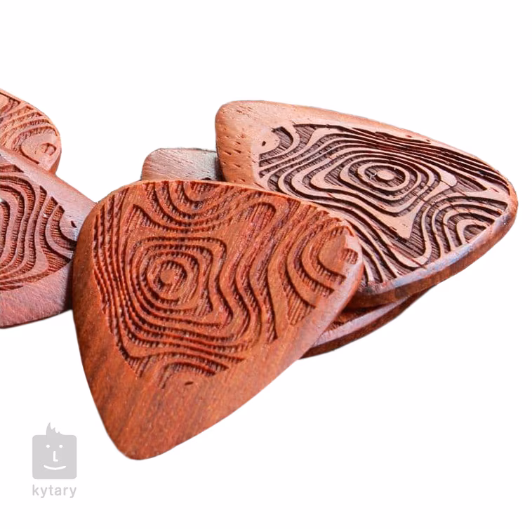 Que vous soyez à la recherche d'un cadeau pour un passionné de musique ou que vous recherchiez simplement le son parfait et souhaitiez essayer des médiators fabriqués à partir de matériaux non conventionnels, vous trouverez ce qu'il vous faut chez Timber Tones. Le médiator en bois Thumb de la série Laser Tones Grip est fabriqué en bois dur Bloodwood, qui produit un son perçant et clair particulièrement adapté aux guitares électriques. Il a une épaisseur de 2,5 mm, qui se réduit à 0,7 mm vers la pointe. Le motif découpé au laser lui confère non seulement un design élégant, mais aussi une prise en main ferme et antidérapante.
