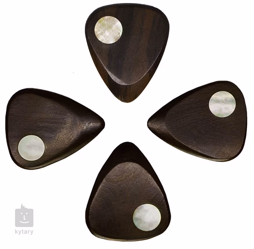 Que vous soyez à la recherche d'un cadeau pour un guitariste passionné ou que vous recherchiez simplement le son parfait et souhaitiez essayer des médiators fabriqués à partir de matériaux non conventionnels, vous trouverez ce qu'il vous faut chez Timber Tones. Les médiators de la série Planet Tones sont fabriqués en ébène africain dur, ce qui leur confère un son perçant et clair. Ils sont donc particulièrement adaptés aux guitares électriques ou aux hautbois. Ils ont une forme standard et une épaisseur de 2,5 mm, qui se rétrécit à 0,7 mm vers la pointe. Ils sont élégamment conçus avec des décorations en coquillage ou en nacre. Dans ce set, vous trouverez quatre plectres avec décorations en nacre.
