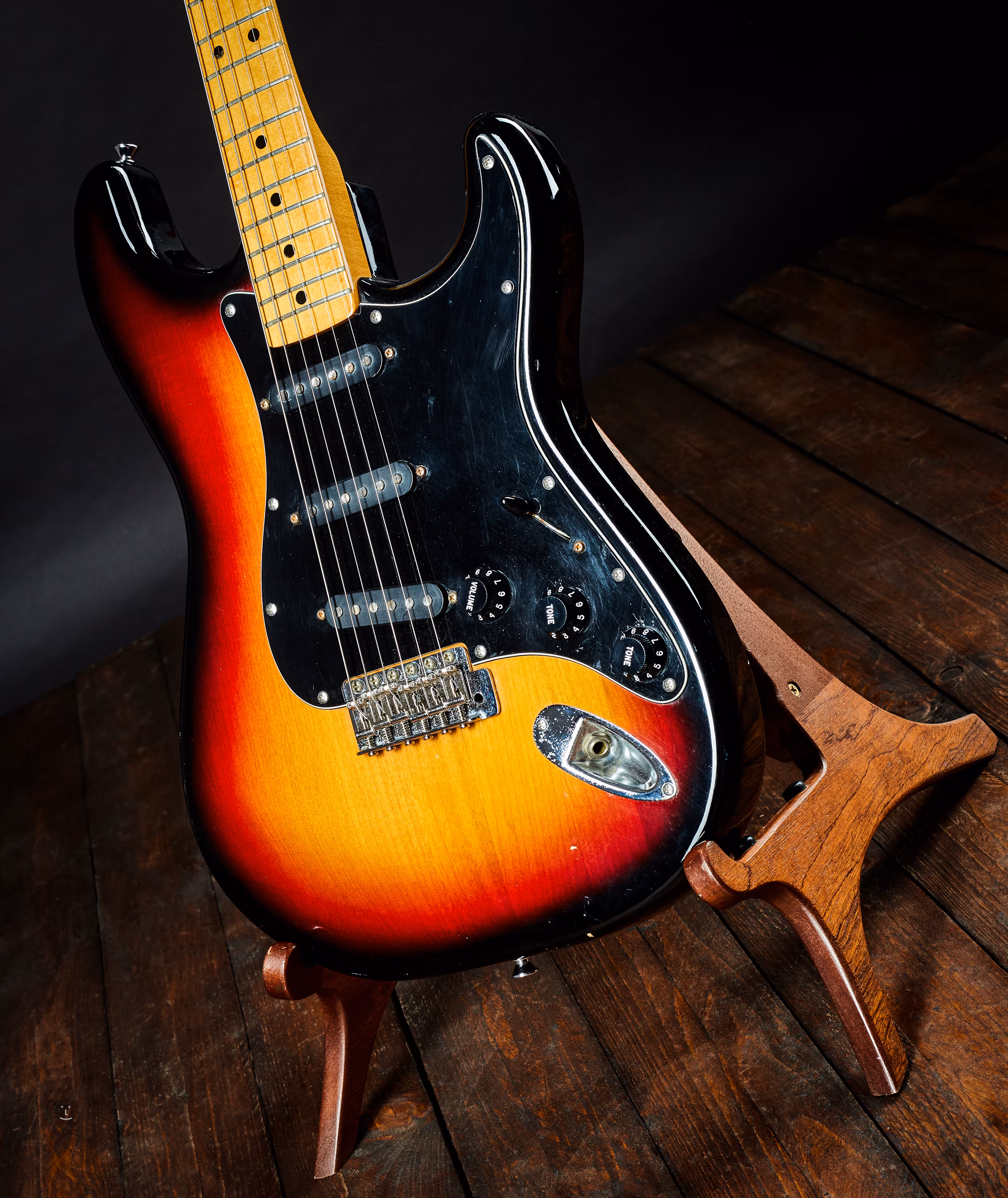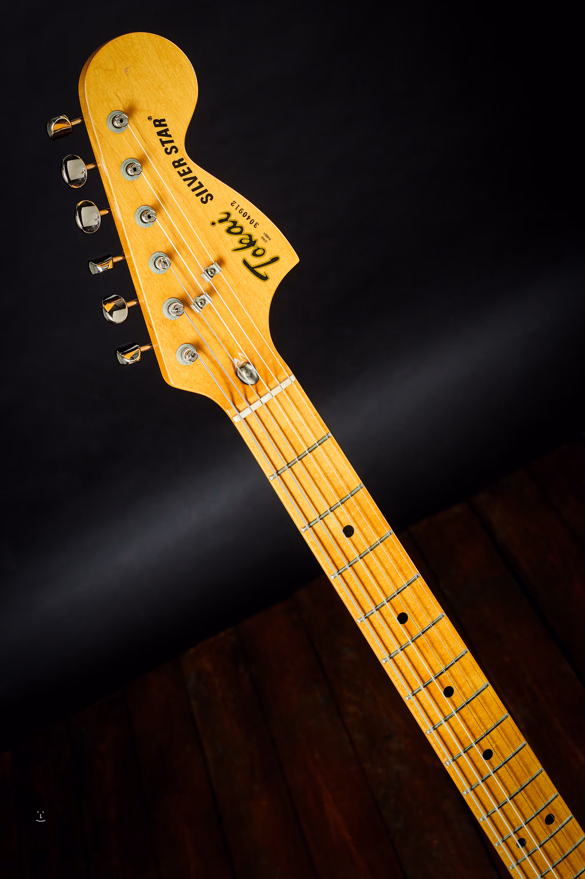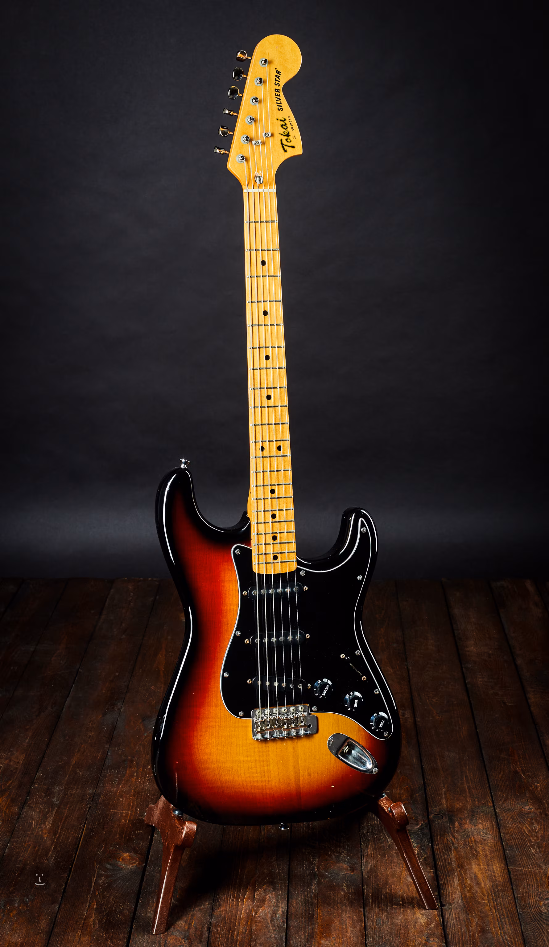 Procès de la stratocaster Tokai. Un modèle qui reproduit les années 70 - grosse tête et articulation du manche à trois boulons. Fabriquée au Japon vers 1983.