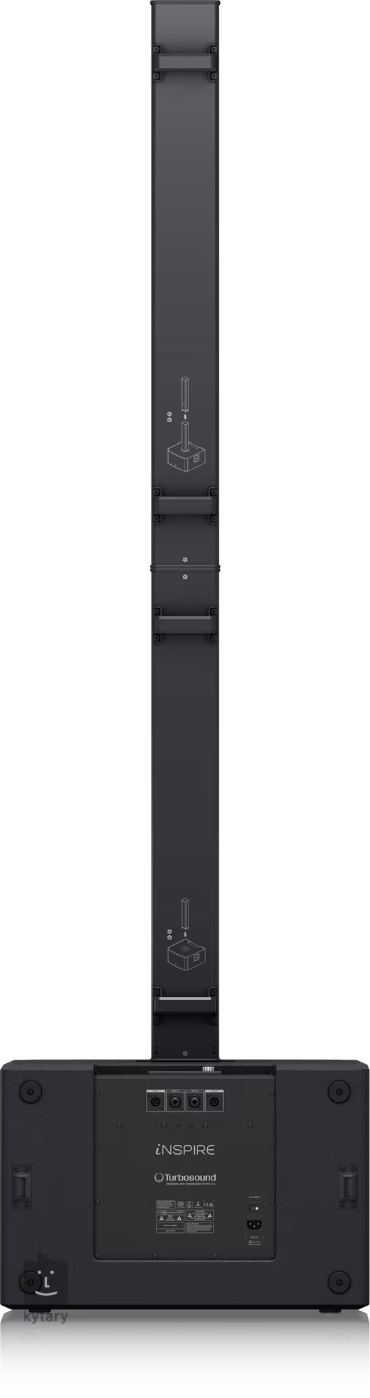 Le système est très facile à installer - grâce au système de montage sur tour en aluminium, vous pouvez vous passer de câbles et de supports inutiles. Les enceintes sont logées dans un boîtier très résistant avec une finition noire mate. Une grille en acier les protège à l'avant.