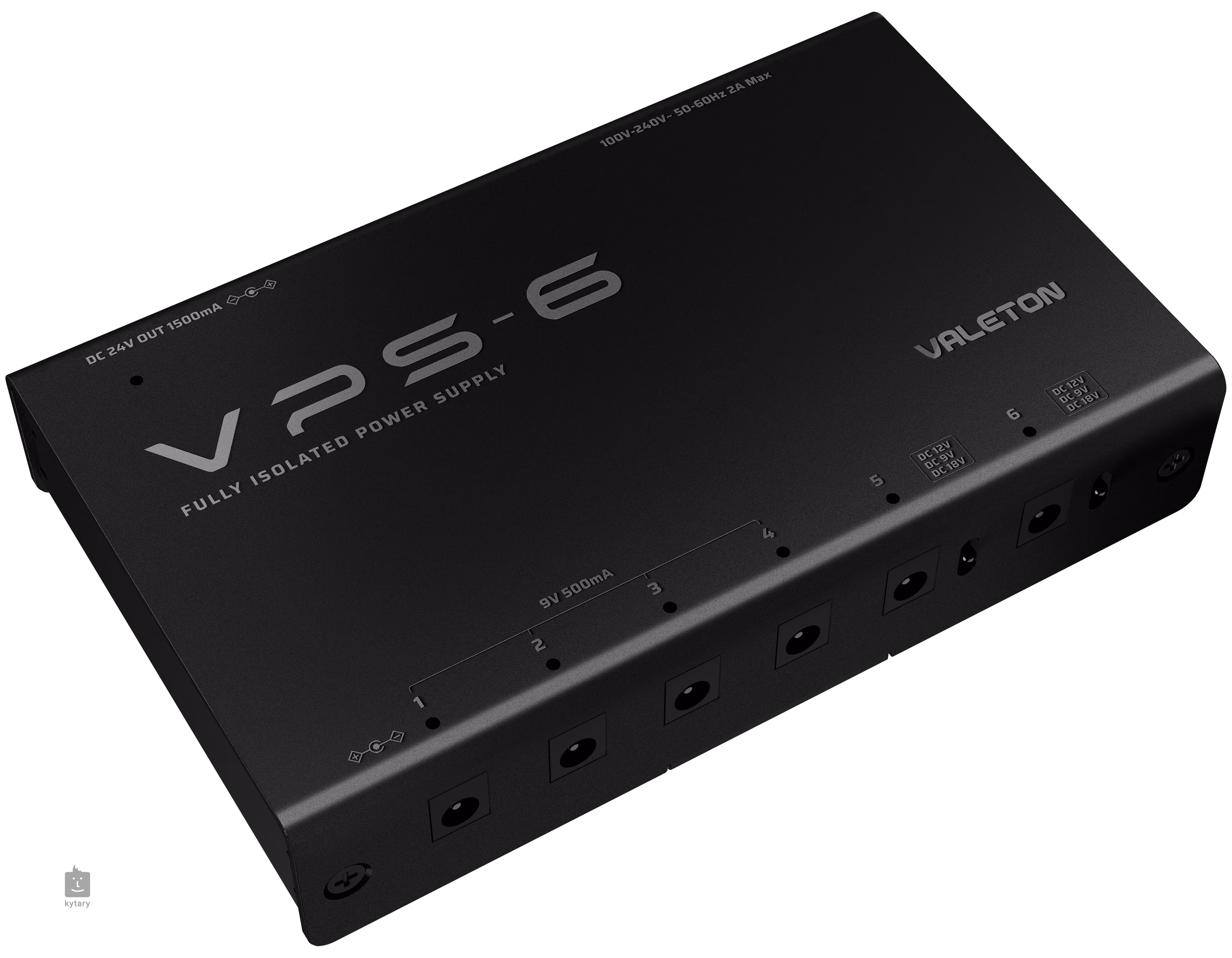 Le Valeton VPS-6 est un multiadaptateur fiable, à double isolation, qui permet d'alimenter la plupart des pédales d'effets courantes sur le marché. Il comporte six sorties isolées, dont quatre fournissent une tension fixe de 9 V (500 mA) et deux offrent des tensions sélectionnables de 9 V (500 mA), 12 V (375 mA) ou 18 V (250 mA). Toutes ces sorties sont en courant continu (DC) avec un négatif central.