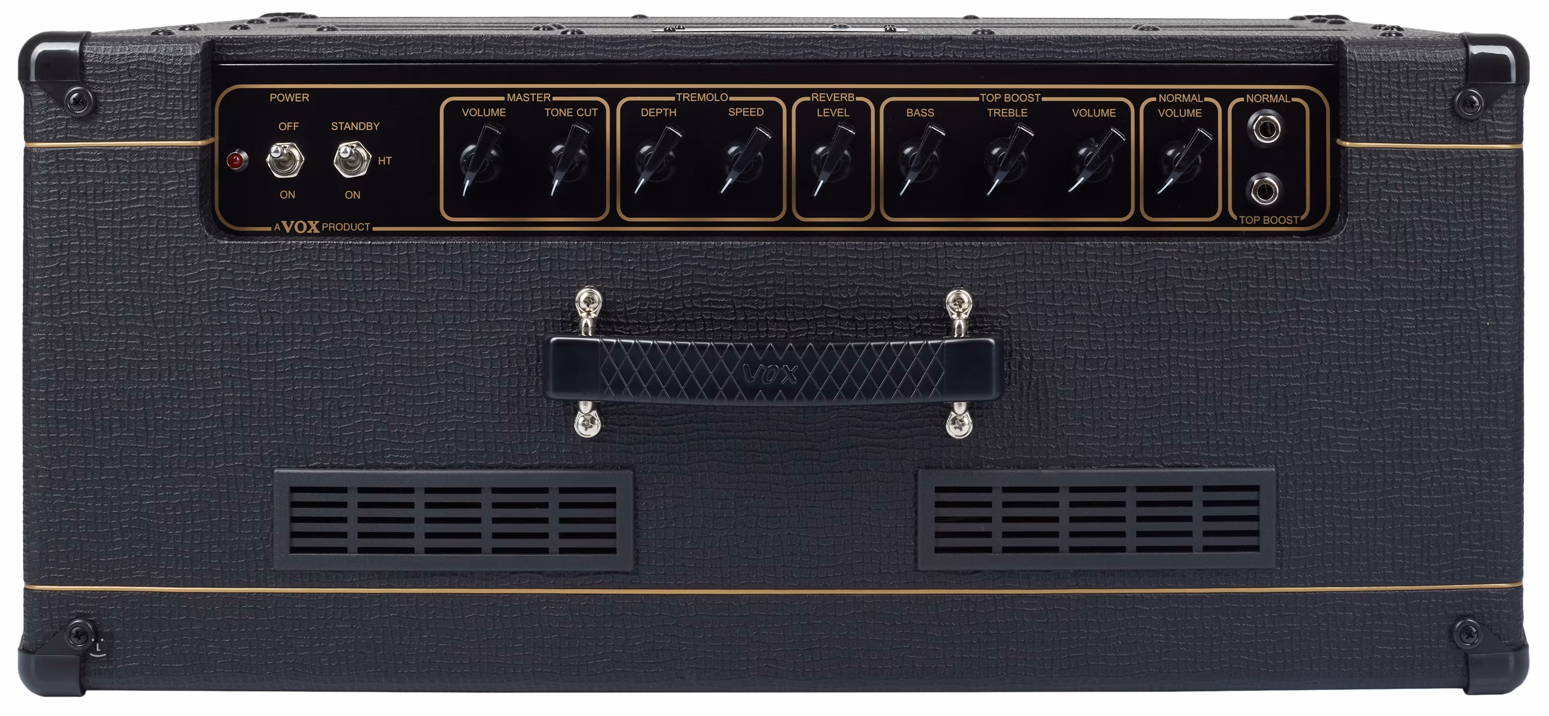 Sur le panneau principal, vous trouverez deux entrées instrument pour les canaux Normal et Top Boost. Alors que le canal Normal ne dispose que d'un réglage de volume, le canal Top Boost offre un égaliseur à deux bandes pour les graves et les aigus. Il y a également une réverbération à ressort intégrée avec une commande Level pour ajuster le niveau de l'effet, et un trémolo premium avec des potentiomètres Depth et Speed. La section Master offre un volume Master final et un réglage Tone Cut pour ajuster la réponse en fréquence. Le panneau arrière de l'unité offre des sorties pour un haut-parleur externe avec une impédance de 8 ou 16 ohms et une sortie pour pédale.