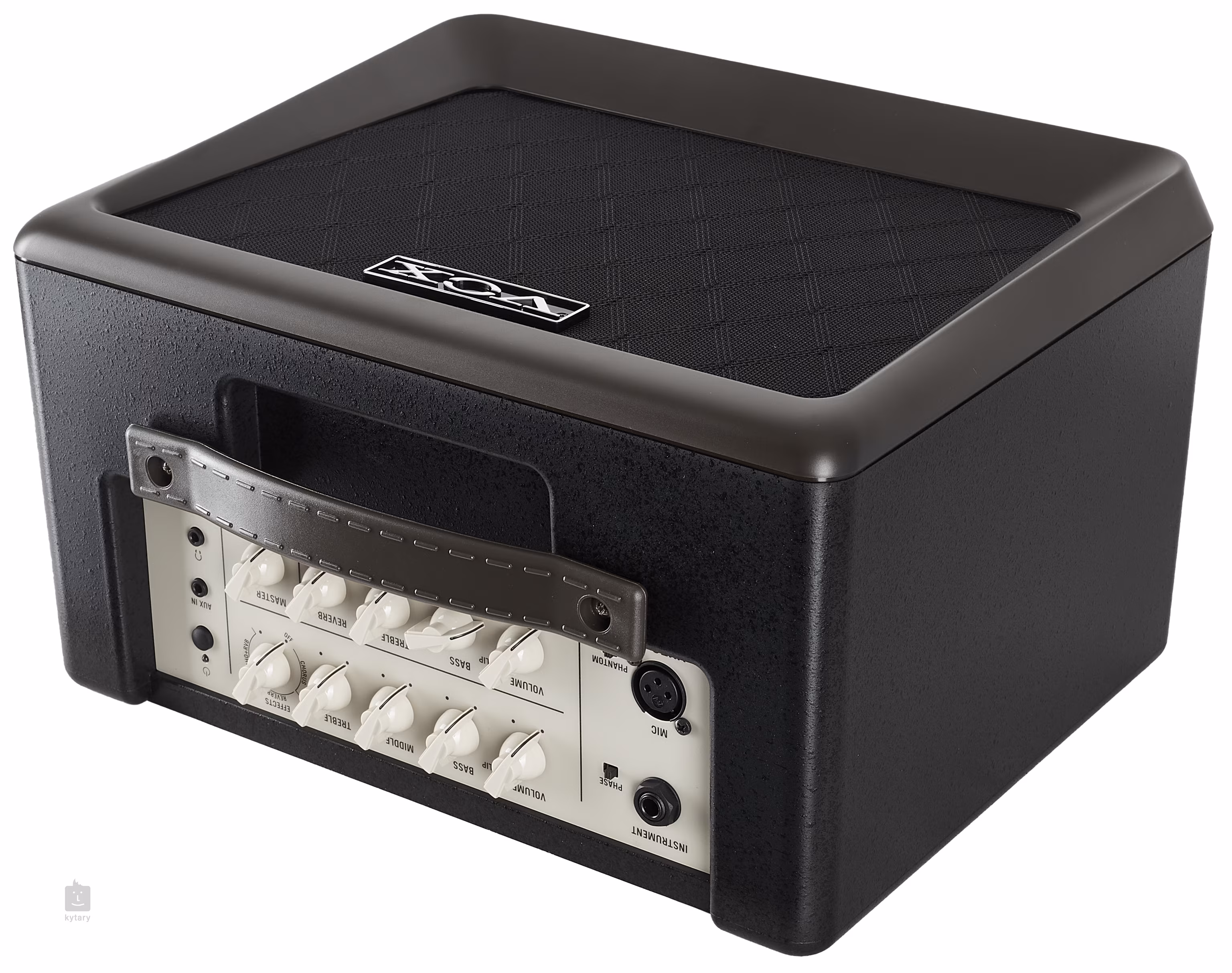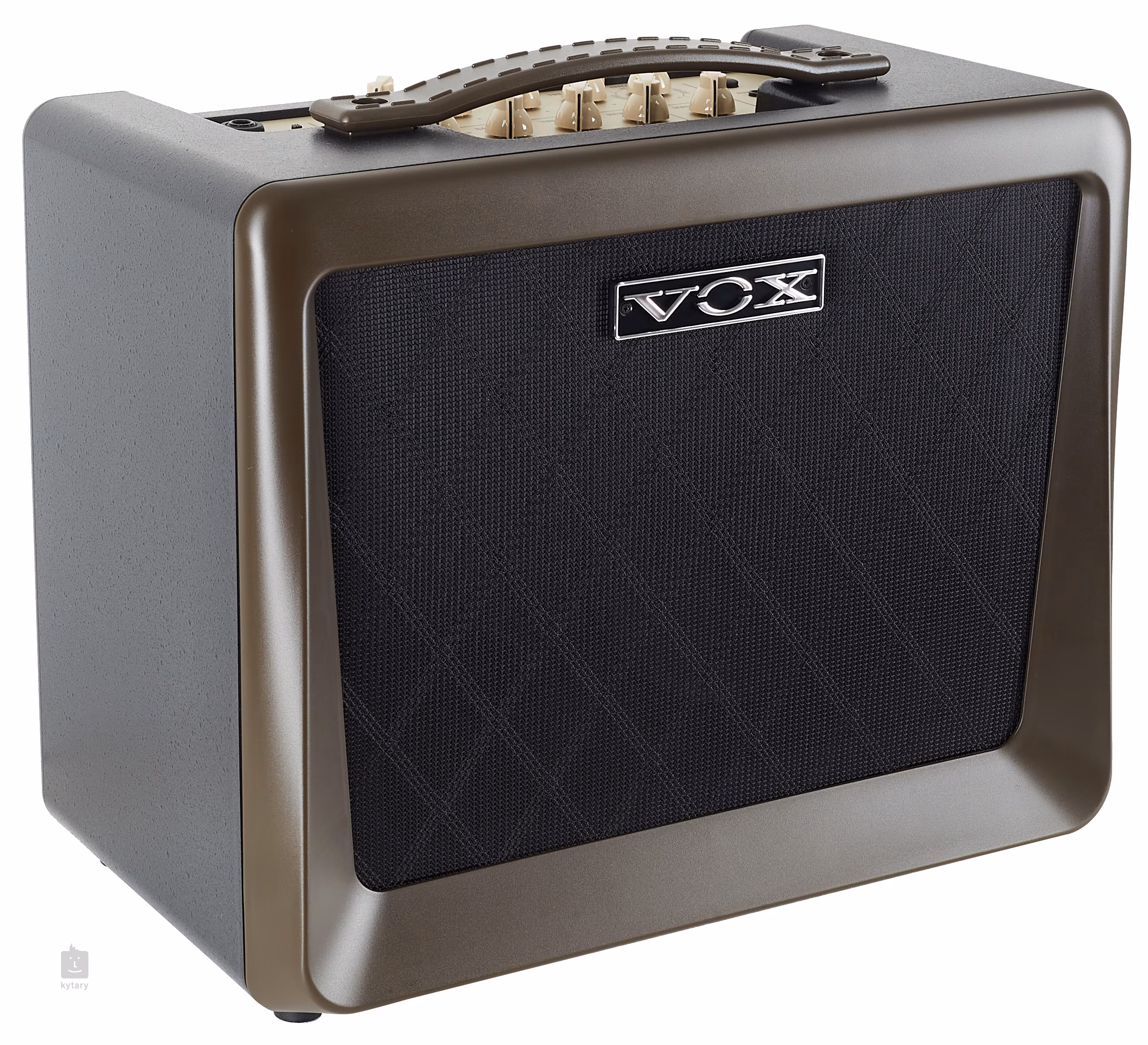 Compact et léger sont deux mots qui décrivent le combo pour guitare acoustique VX50 AG de la célebre marque Vox. Contemporain aussi, il faut l'ajouter. Il utilise des tubes Nutube au lieu de tubes de guitare conventionnels ; le résultat est un son authentique avec le caractere chaleureux des tubes traditionnels, capturant toutes les nuances de votre jeu, qu'il s'agisse d'un jeu subtil ou percutant. Le châssis de la boîte est fabriqué en matériau composite ABS. Ce matériau est non seulement léger et durable, mais aussi ductile par rapport au bois. Cela donne a la boîte un design 3D avec une résonance sonore optimale. Son corps abrite un haut-parleur de huit pouces et un tweeter de huit pouces.