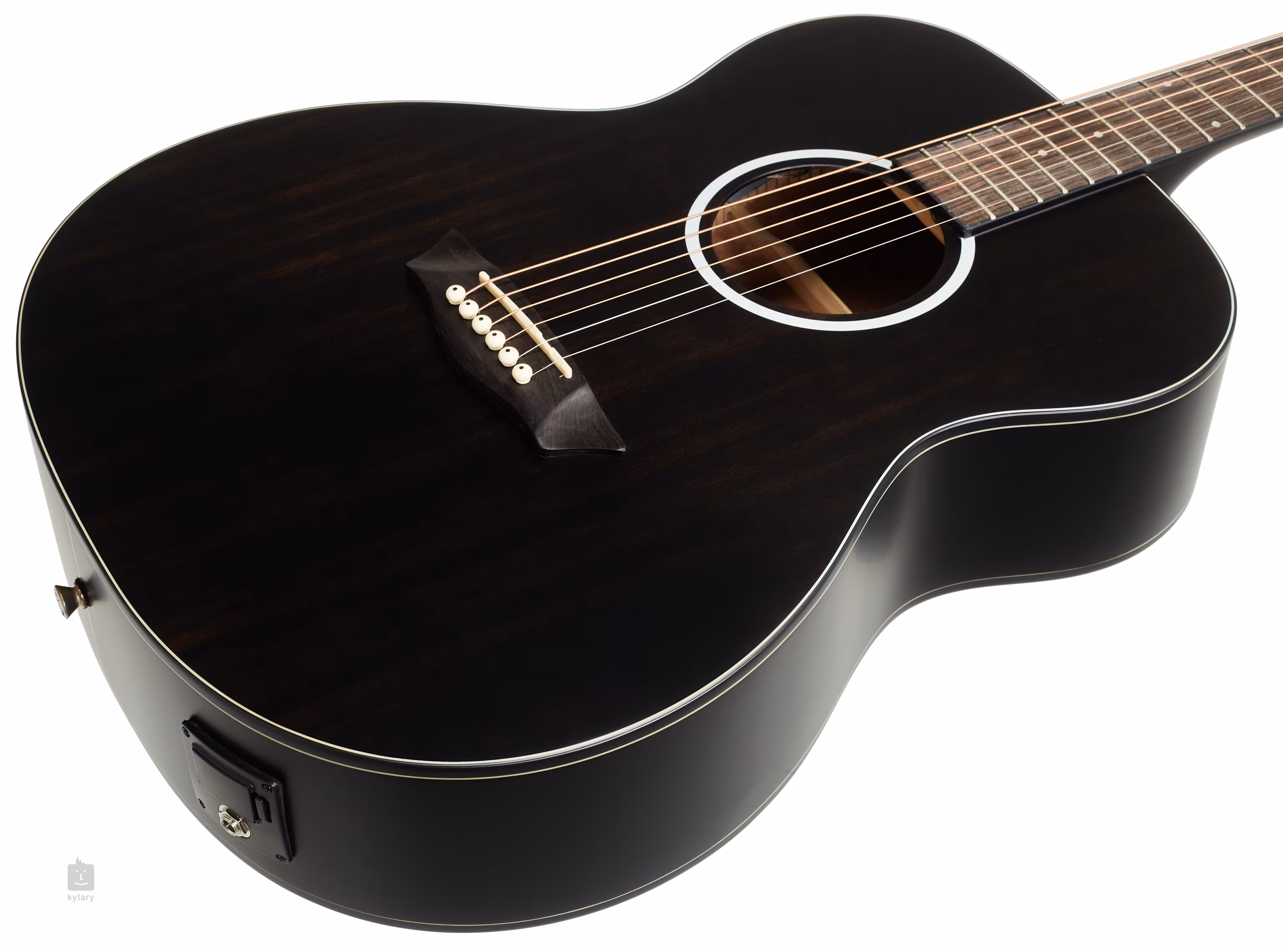 La Washburn DFEFE-U de la série Deep Forest est un instrument abordable avec un corps Folk plus compact et un design élégant. La façade de la guitare est en ébène de macassar stratifié avec un beau grain de bois caractéristique, le fond et les éclisses sont en okoumé stratifié laqué noir. Le profil agréable du manche en acajou et la touche en composite vous offrent le confort de jeu nécessaire. Les points de position permettent de naviguer facilement sur la surface de la touche. Les cordes sont montées dans une mécanique en chrome moulé et une tête en composite via des frettes zéro et selle en plastique.