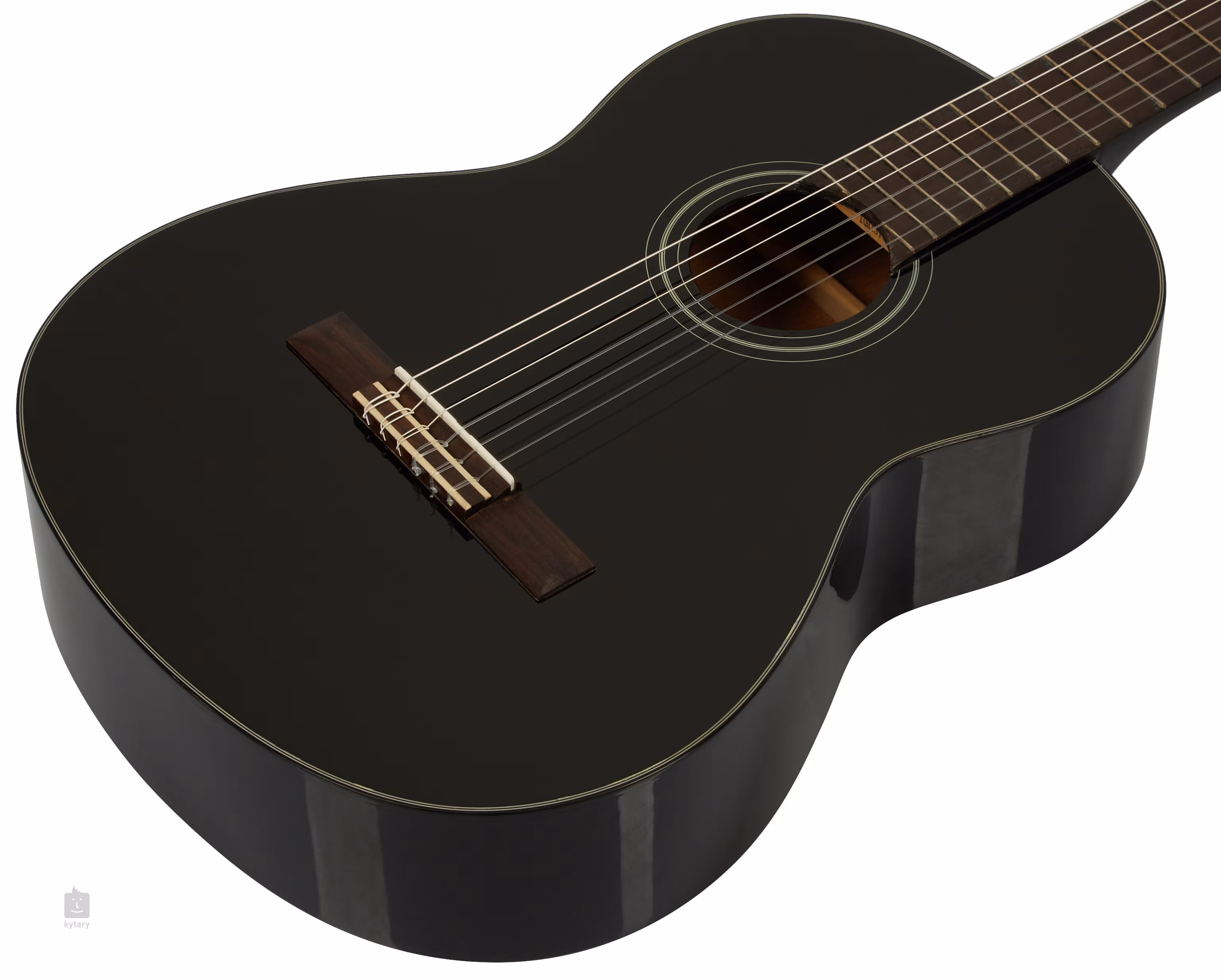 La C40 est dotée d'un corps stratifié composé d'une façade en épicéa et d'un fond et de côtés en méranti, d'une touche et d'une tete en palissandre, d'une mécanique ouverte classique chromée et de garnitures et rosaces traditionnelles.