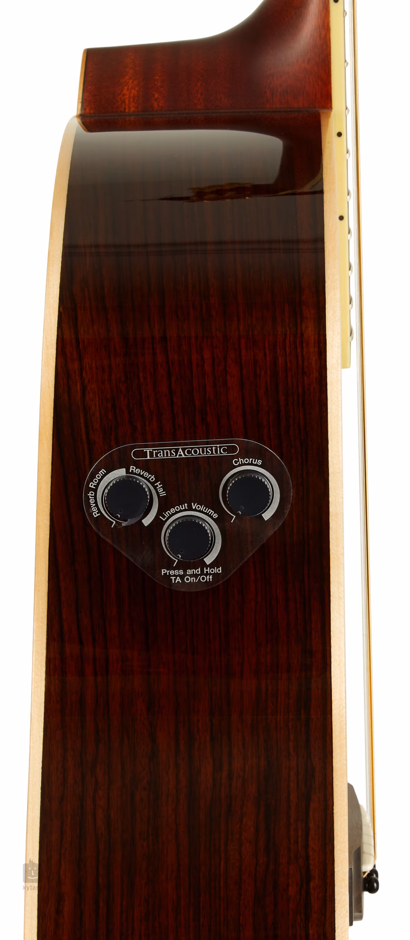 Un membre actif (actionneur) installé a l'intérieur de la plaque arriere de l'instrument réagit aux vibrations des cordes et transmet les vibrations dans le corps - créant ainsi des effets authentiques de réverbération et de chorus directement dans le corps de la guitare. Les commandes de chorus et de réverbération sont discretement placées a l'arriere de l'instrument, et une pression sur la troisieme commande (TA Switch) active le mode TransAcoustic. La guitare offre également une option de sonorisation externe standard (électronique SYSTEM70 TransAcoustic avec micro piézo), le commutateur TA servant de réglage du volume de sortie. Un boîtier de batterie extractible tres pratique est situé a côté de la prise de sortie.